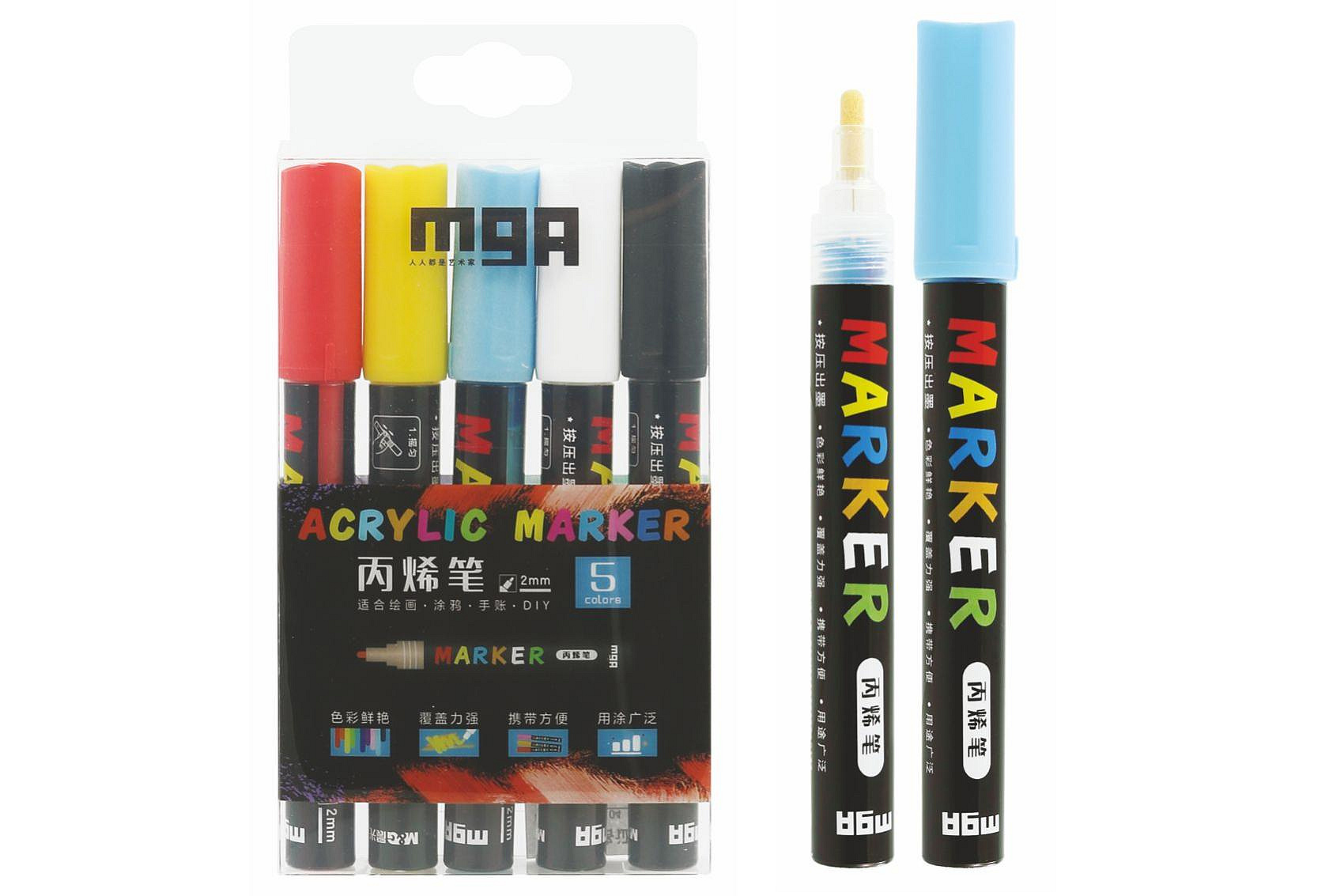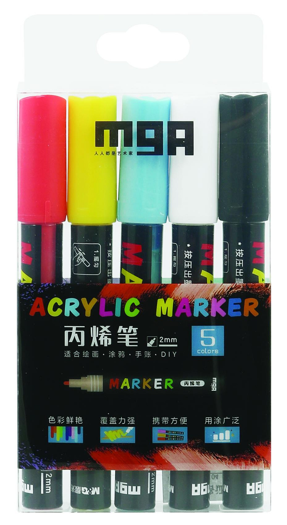 Akrylový popisovač 5ks i na keramiku,sklo,kameny v krabičce 9x18x2cm