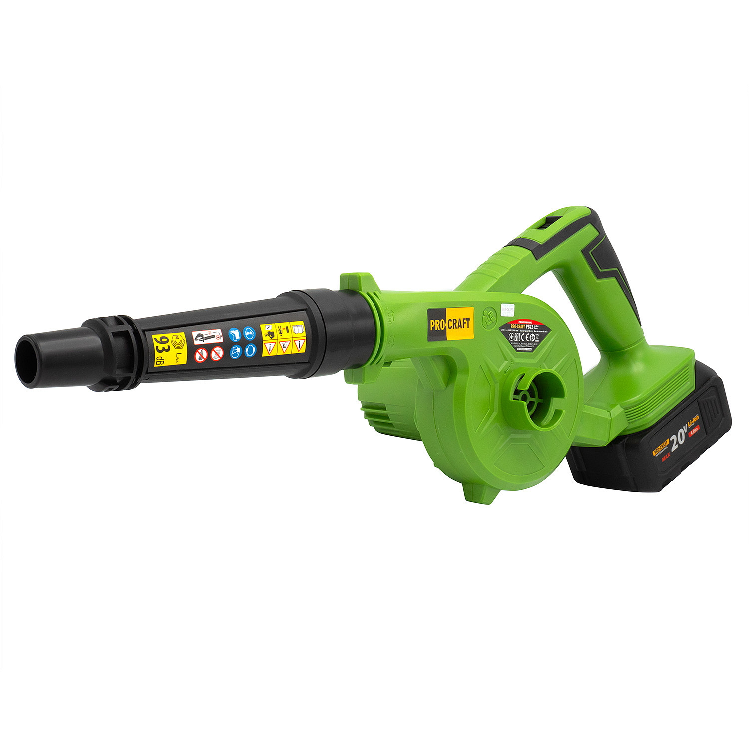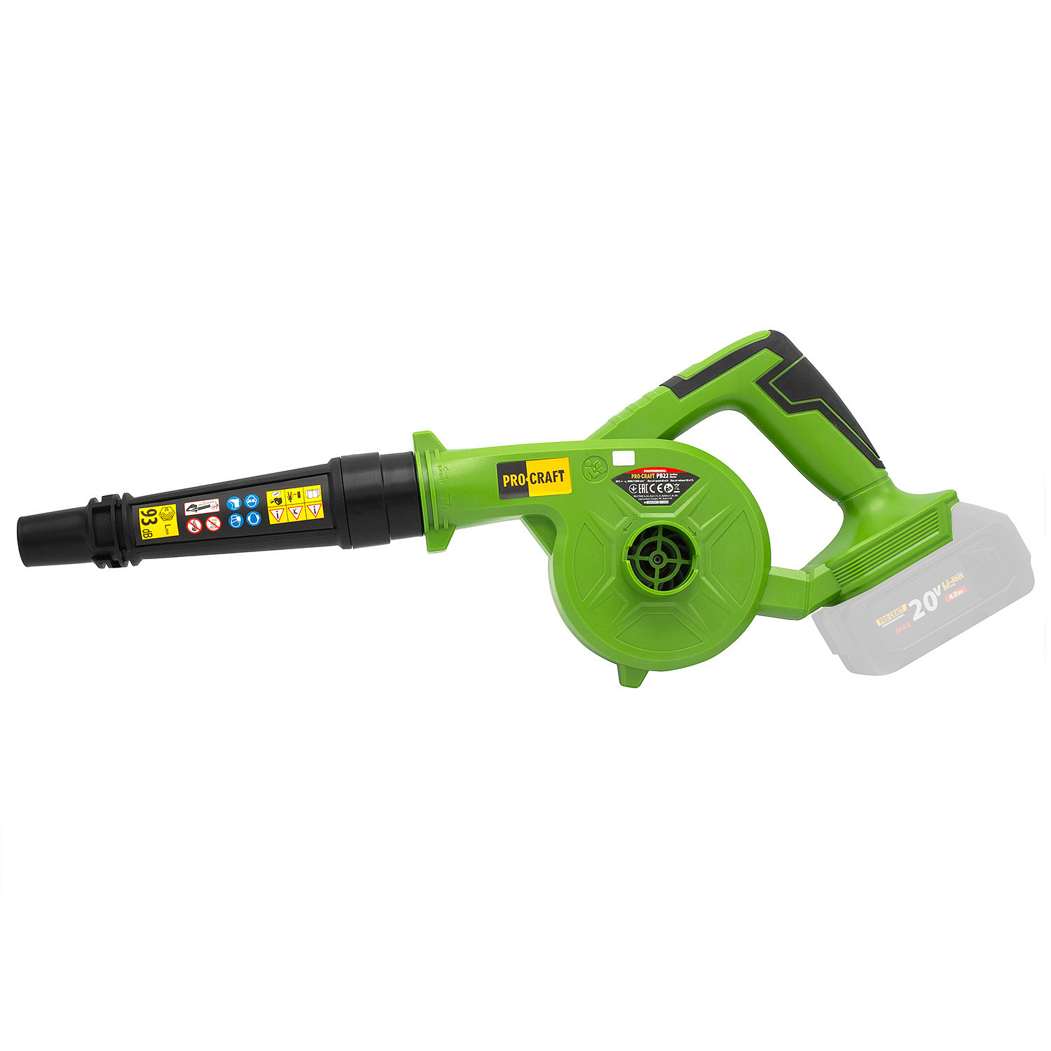Aku fukar Procraft PB22bb (bez baterie a nabíječky) Doporučená baterie: 20V 4Ah Li-ion Otáčky (min.-1) 8000-15000 Max. průtok vzduchu, m3/h 90 Max. rychlost vzduchu (km/h) 68 Hmotnost, 0,91 kg.