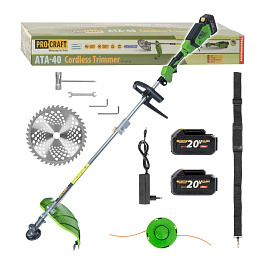 Aku křovinořez Procraft ATA-40 Součástí balení: 2 baterie 4Ah, nabíječka, pilový kotouč, strunová hl
