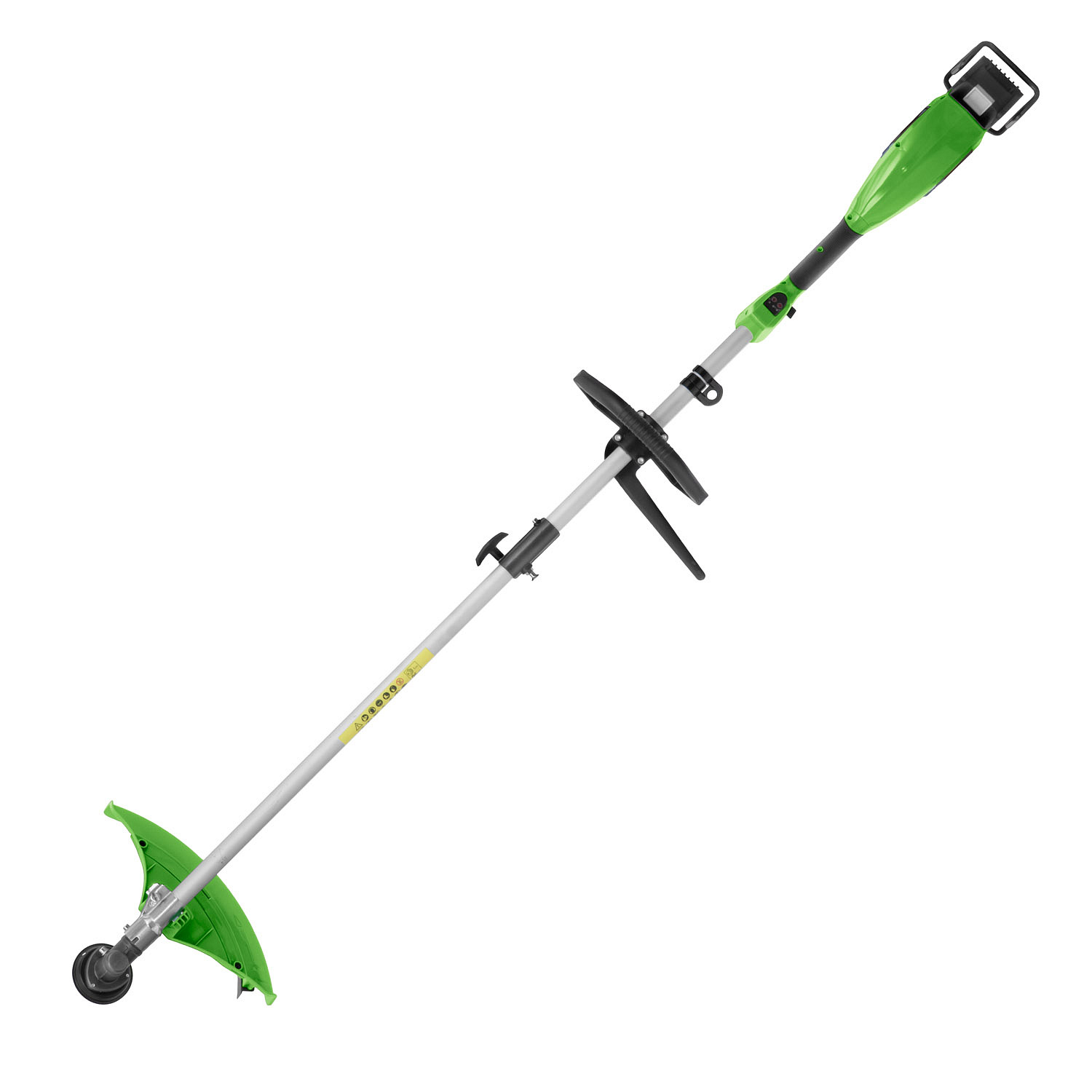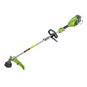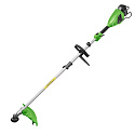 Bezuhlíkový motor, oblouková rukojeť, dělitelná tyč. Součástí balení: baterie 40V 4Ah, nabíječka, popruh, ochranný rám, pilový kotouč, strunová hlava s průměrem struny 2,4mm a montážní klíč. Pracovní záběr (mm) 420. Otáčky, /min: 0-4500/5500.