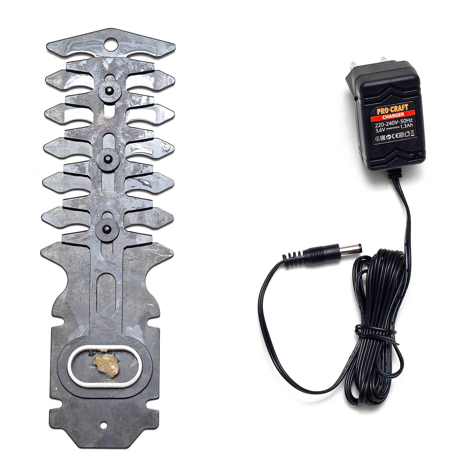Výkon: 3,6V Kapacita baterie: 1,3 Ah; Doba nabíjení: 3-5 hodin; Počet otáček naprázdno: 1000 ot./min; Délka nástavec na úpravu keřů (mm) 110 Šířka nástavce na trávník (mm) 80