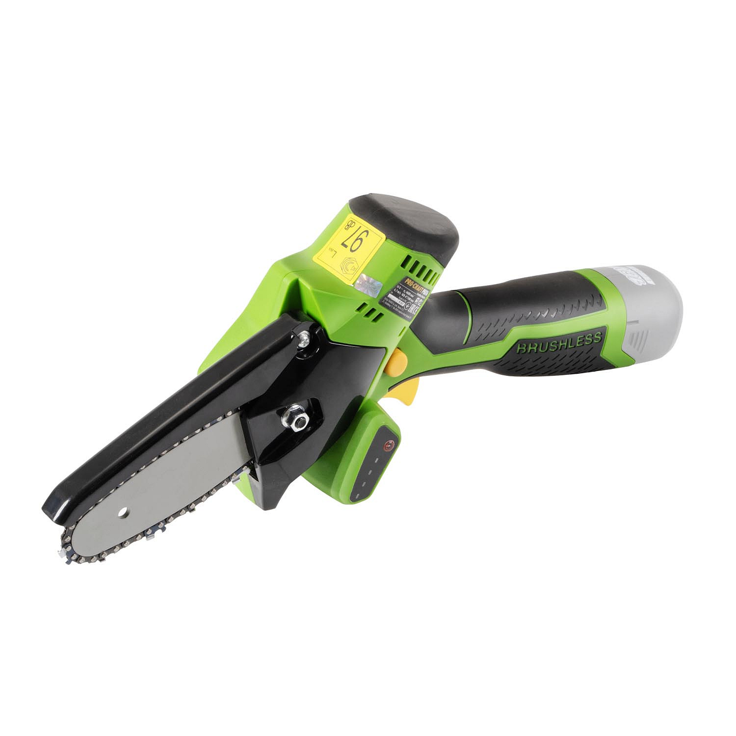 Součástí balení: montážní klíč a nádoba na mazací olej vodicí lišta, pilový řetěz, ochranný kryt Bezúhlíkový motor Otáčky: 0-4600/min Rychlost řetězu: 6,7m/s Délka lišty: 100mm Rozteč řetězu: 1/4" Hmotnost: 1,2kg