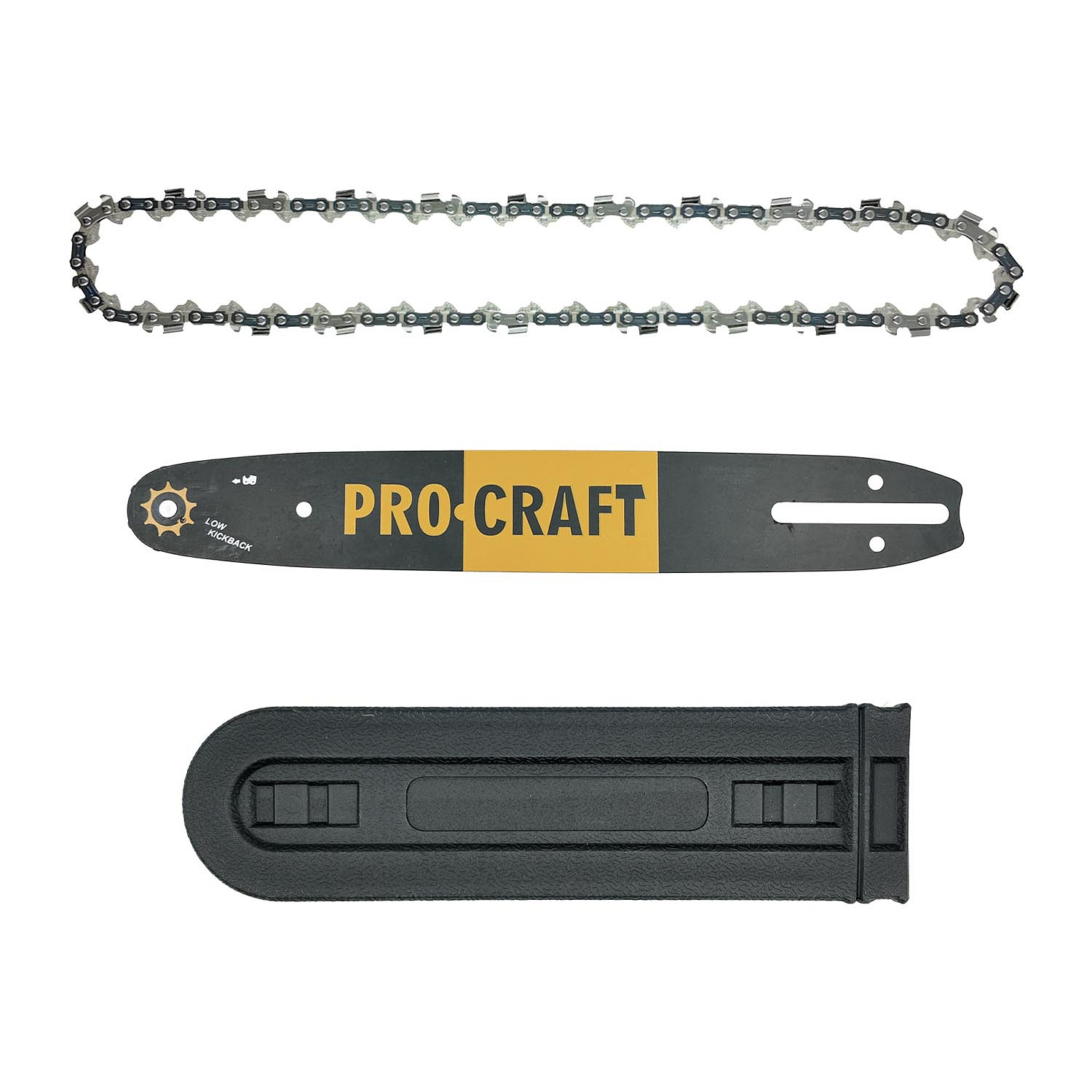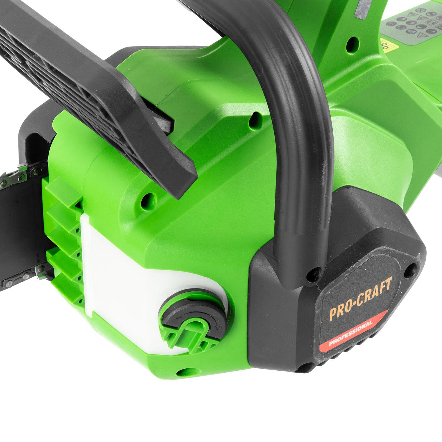 Aku ruční pilka Procraft PKA38 (bez baterie a nabíječky) Součástí balení: montážní klíč, vodicí lišta, pilový řetěz, ochranný kryt. Doporučená baterie: 20V Li-ion 4Ah Otáčky: 3000/min Délka lišty: 304mm Hmotnost 1,7 kg