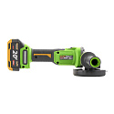 Součástí balení: kufr, 1 baterie 20V 4Ah, nabíječka, montážní klíč Bezuhlíkový motor. Regulace otáček. Průměr kotouče: 125mm Otáčky: 3500/6000/8500min
