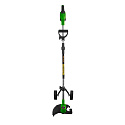 Součástí balení jsou dvě baterie 20V 1,5Ah, nabíječka, 5x plastových čepelí, 2x ocelové nože, kotouč, 2x strunové hlavy a 4x cívky se žací struny. Hmotnost 2.1 kg, Otáčky 9000/min. Pracovní záběr (mm) 150. Průměr trubky (mm) 22.