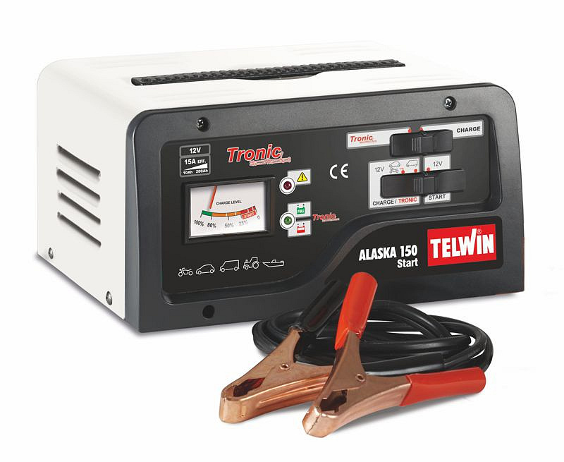 ALASKA 150 START Nabíječka a udržovací zařízení baterií s elektronickou regulací nabíjecího proudu, automatickým přerušením a restartem (TRONIC) pro nabíjení olověných baterií s napětím 12 V pro motocykly, vozidla, dodávky a lehké nákladní vozy.