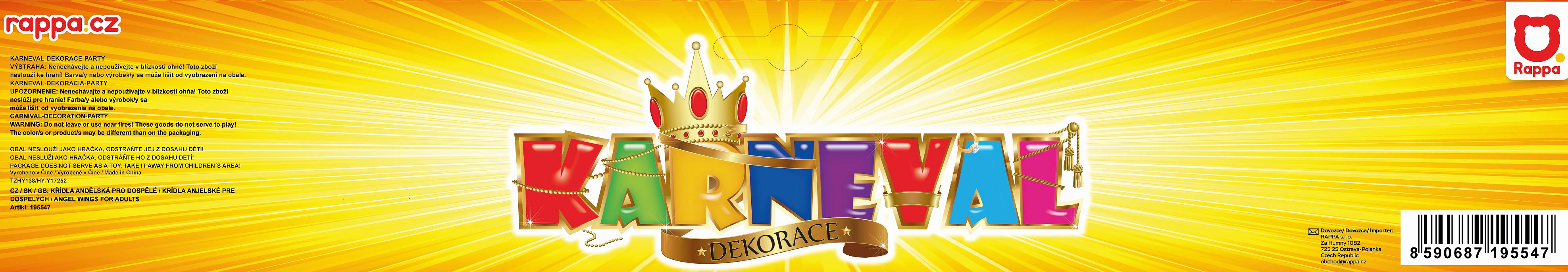 Překrásná křídla pro opravdové anděly se sněhově bílým peřím zdobeným zlatými třpytkami! Tyto nebeská křídla jsou skvělým doplňkem k andělskému kostýmu. Rozměr křídel po rozložení je cca 67 x 46 cm.