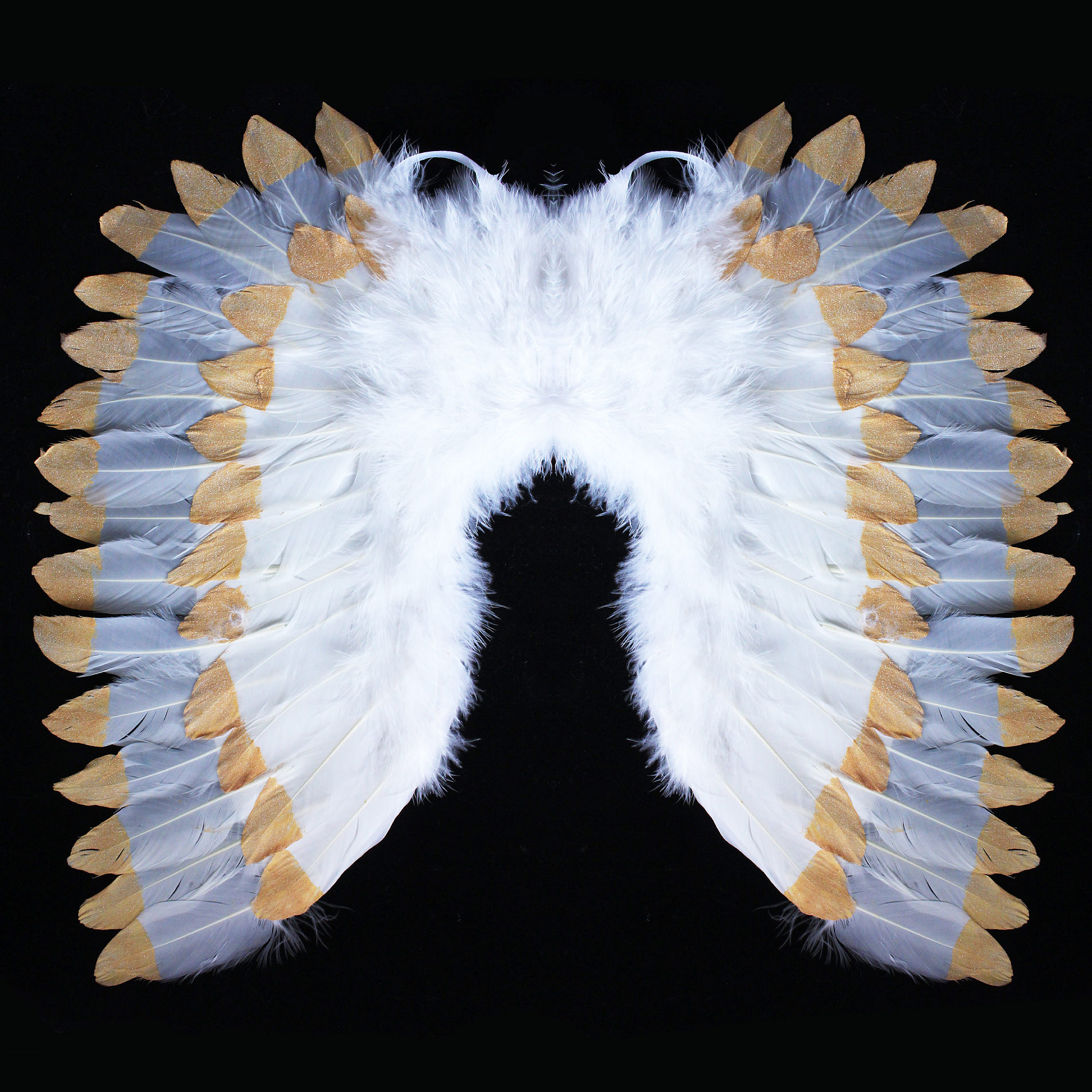 Překrásná křídla pro opravdové anděly se sněhově bílým peřím zdobeným zlatými třpytkami! Tyto nebesk