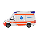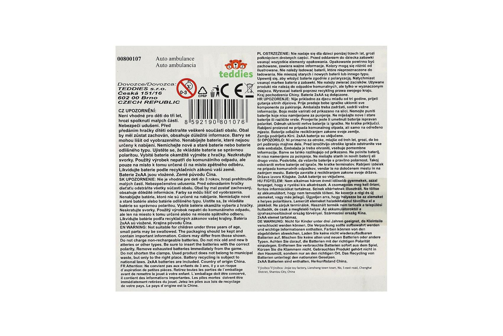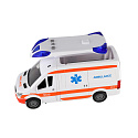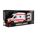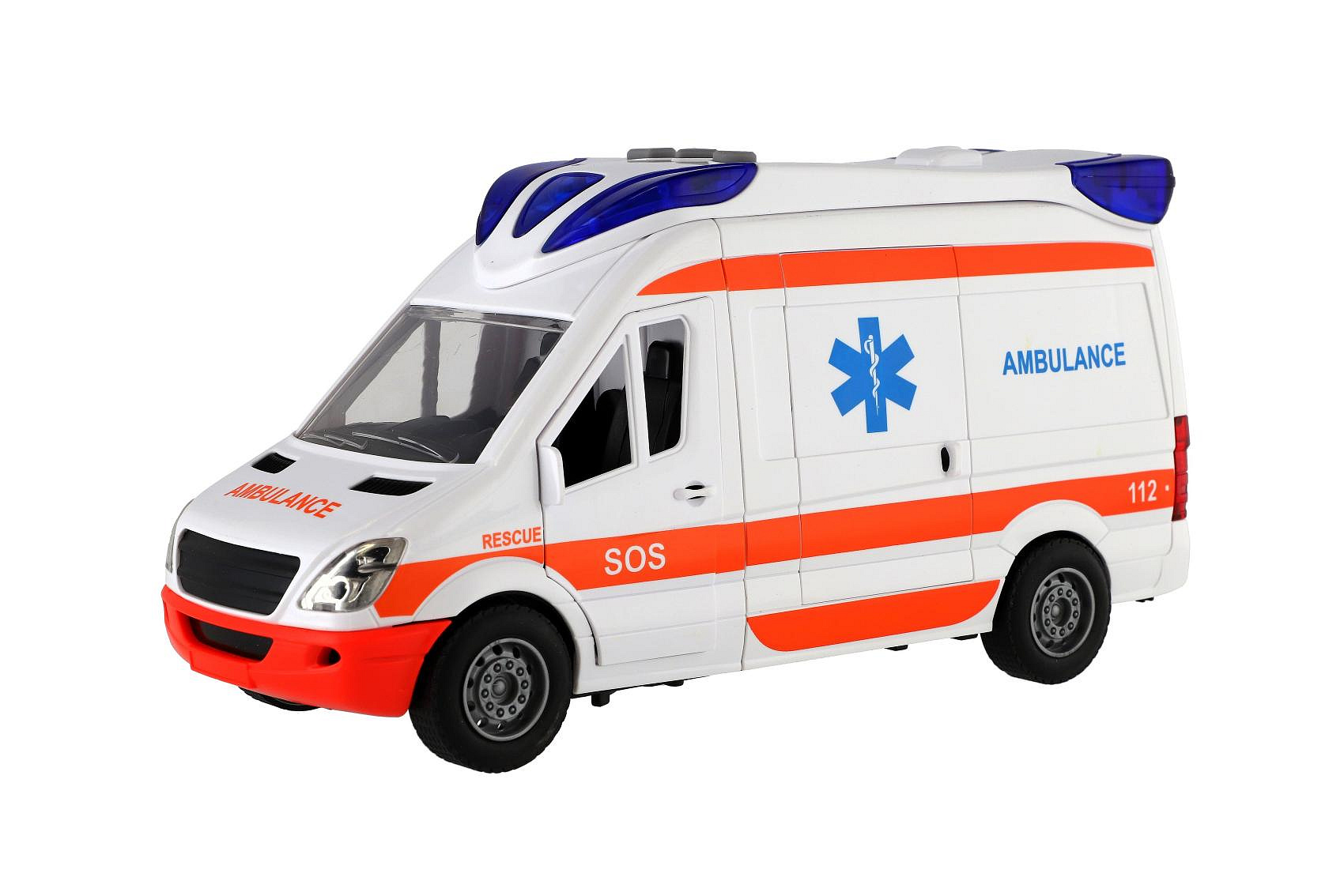 Auto ambulance plast 26cm s lehátkem na setrvačník se světlem se zvukem v krabici 37x18x11,5cm