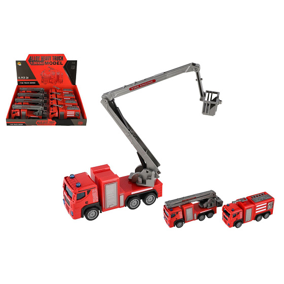 Popis Auto hasiči plast 14cm na zpětné natažení 2 druhy 8ks v boxu