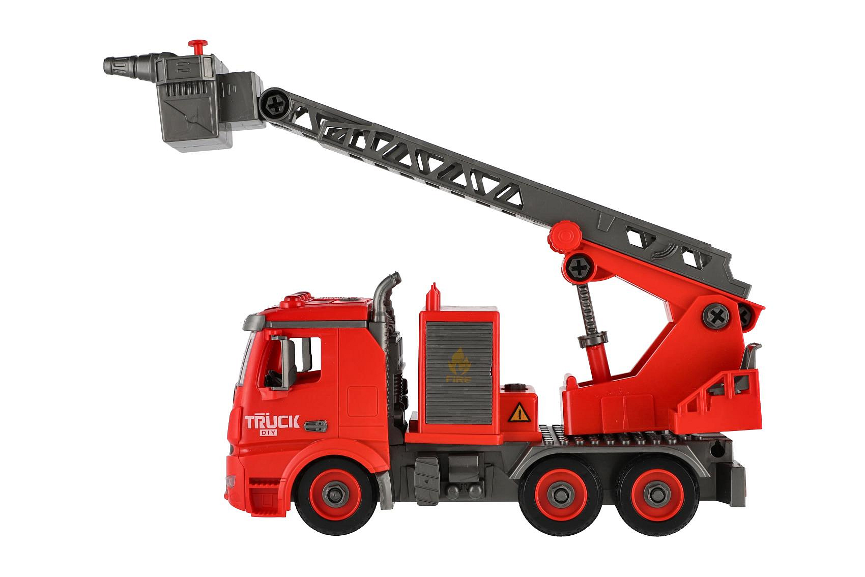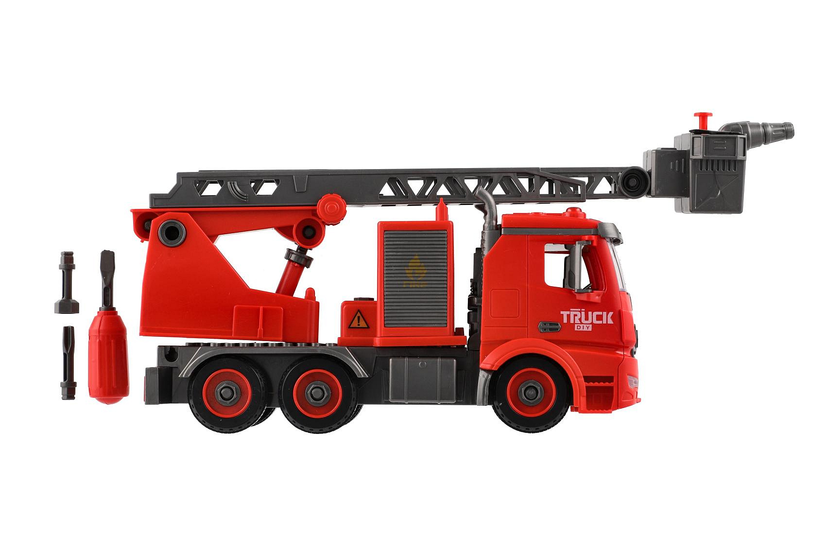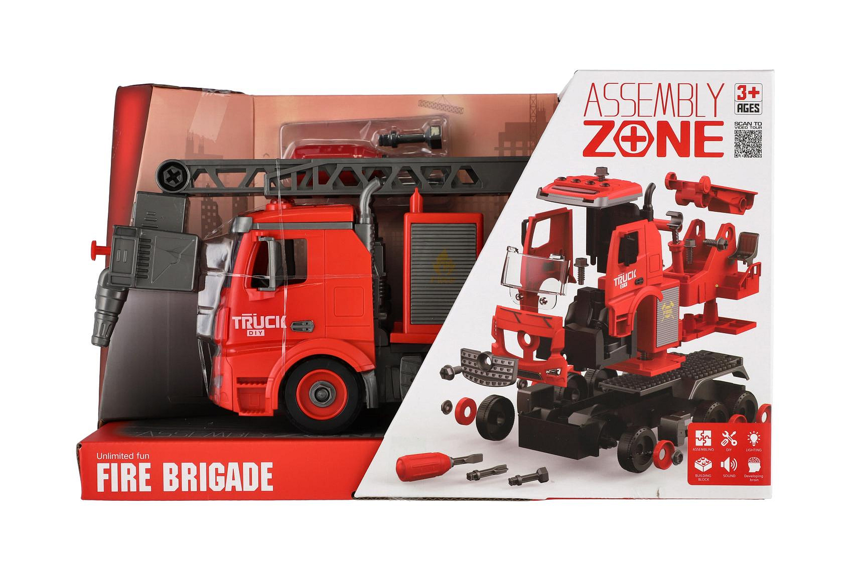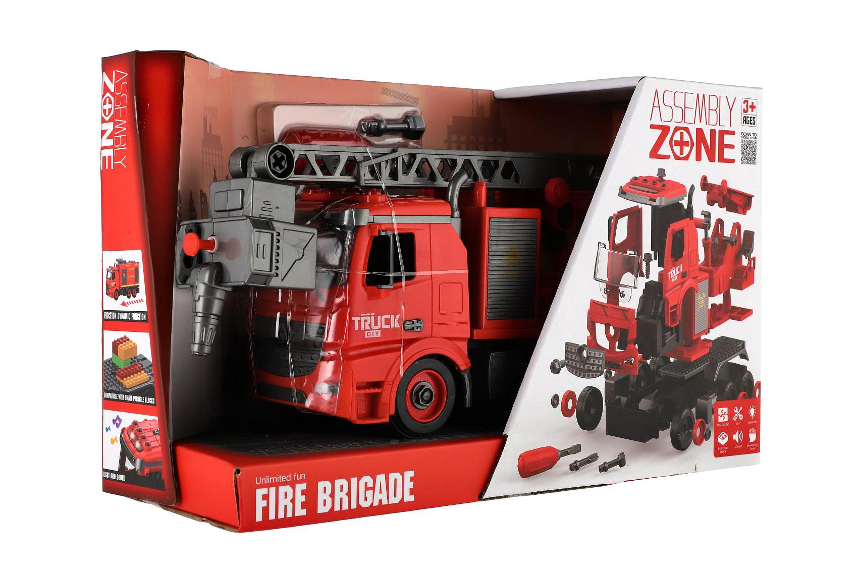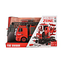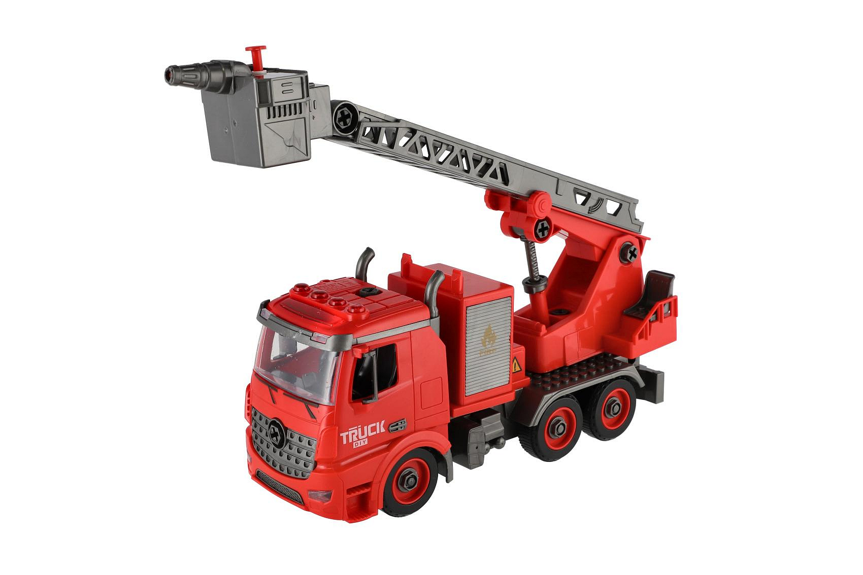 Auto hasiči šroubovací plast 36cm stříkací vodu na setrvačník na bat. se zvukem se světlem v krabici