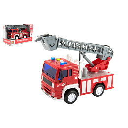 Auto hasiči stříkací vodu 20cm plast na setrvačník na bat. se zvukem se světlem v krabici 24x16x12cm