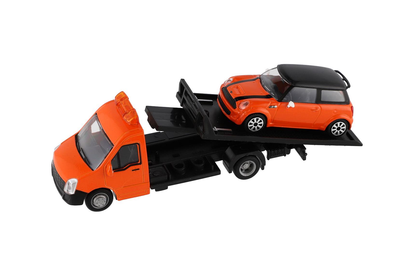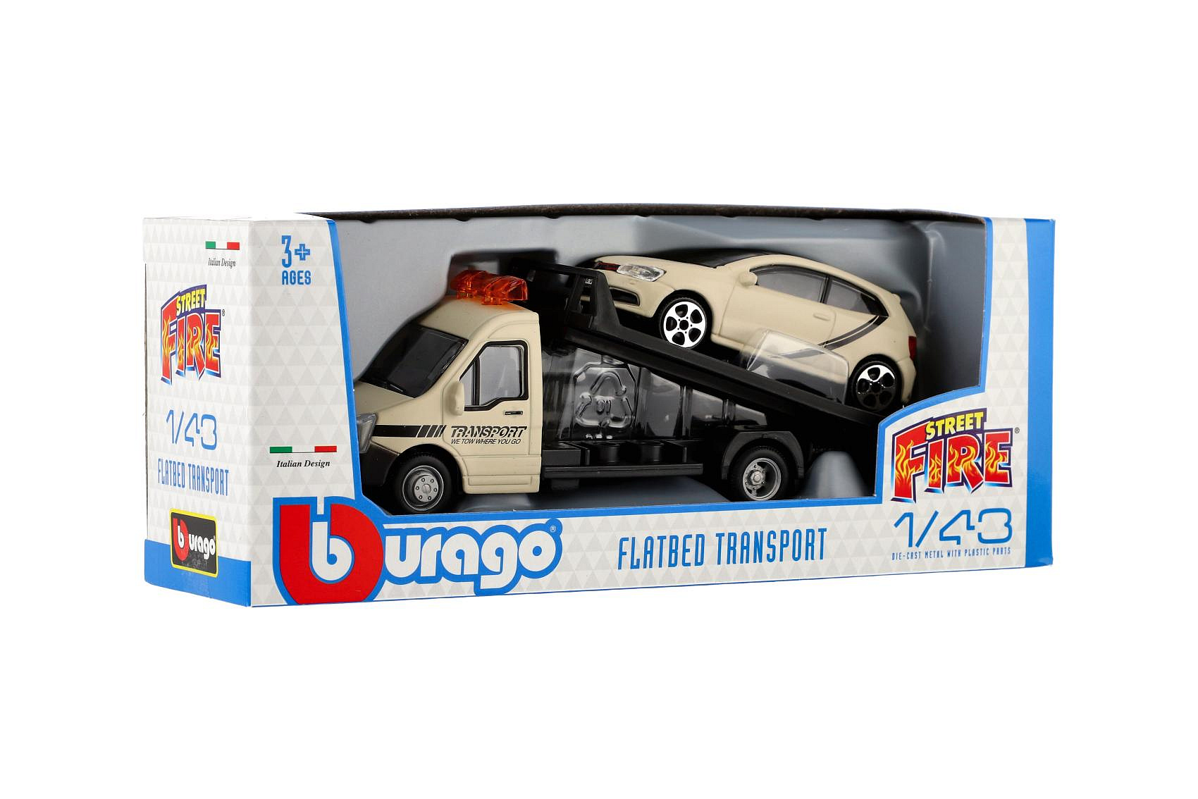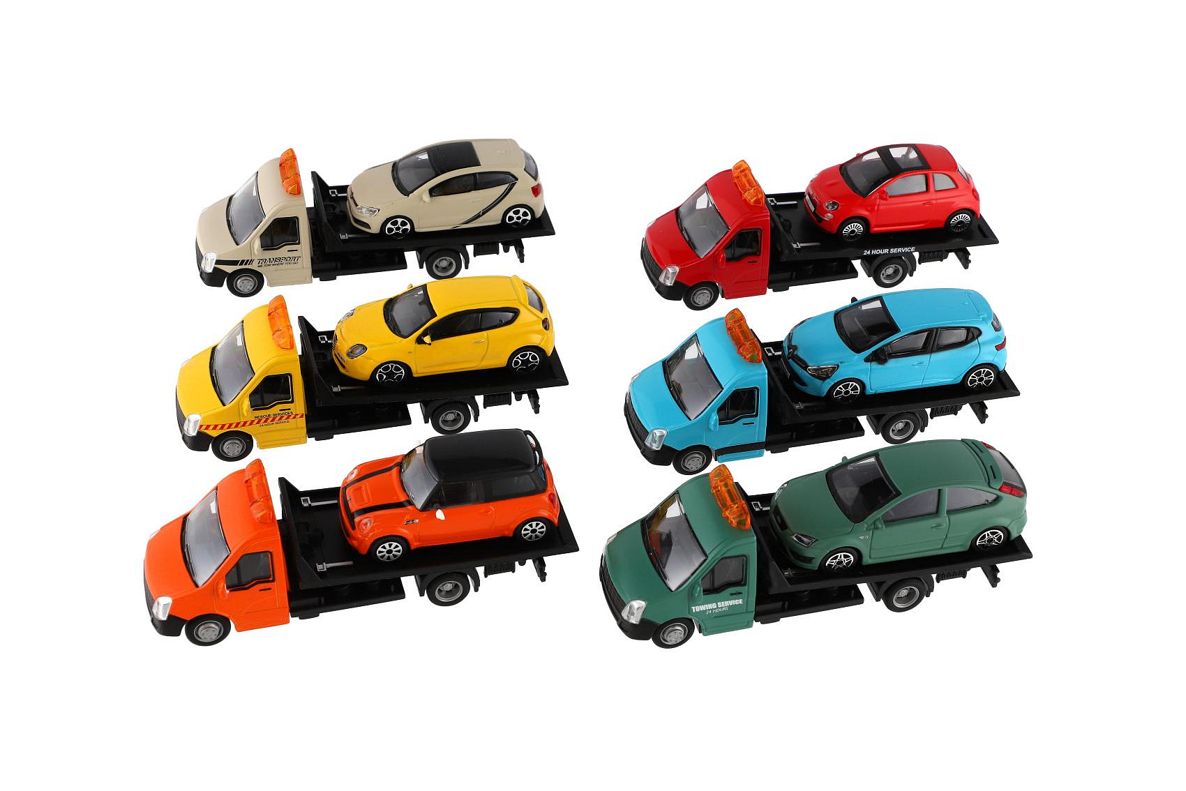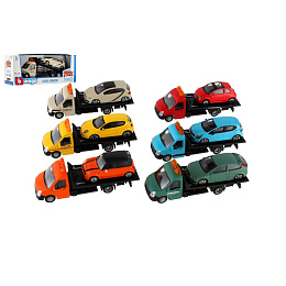 Auto/kamion Bburago odtahovka + auto 1:43 kov/plast 21cm 6 barev v krabičce 22x9x6,5cm