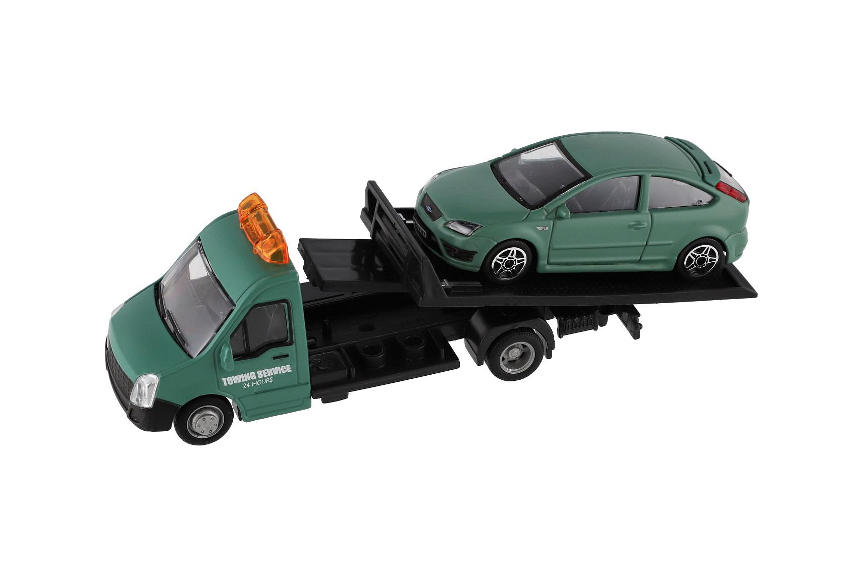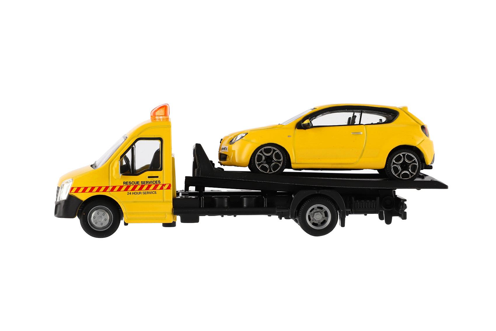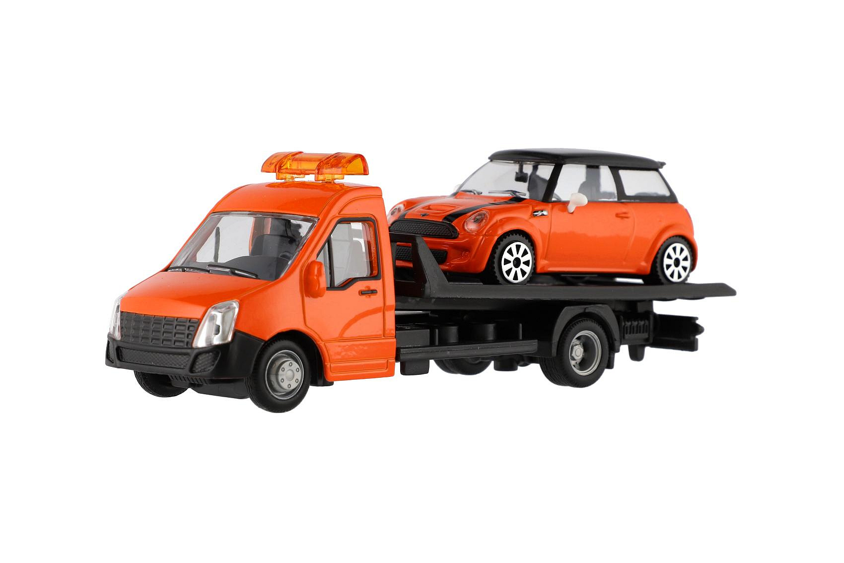 Auto/kamion Bburago odtahovka + auto 1:43 kov/plast 21cm 6 barev v krabičce 22x9x6,5cm