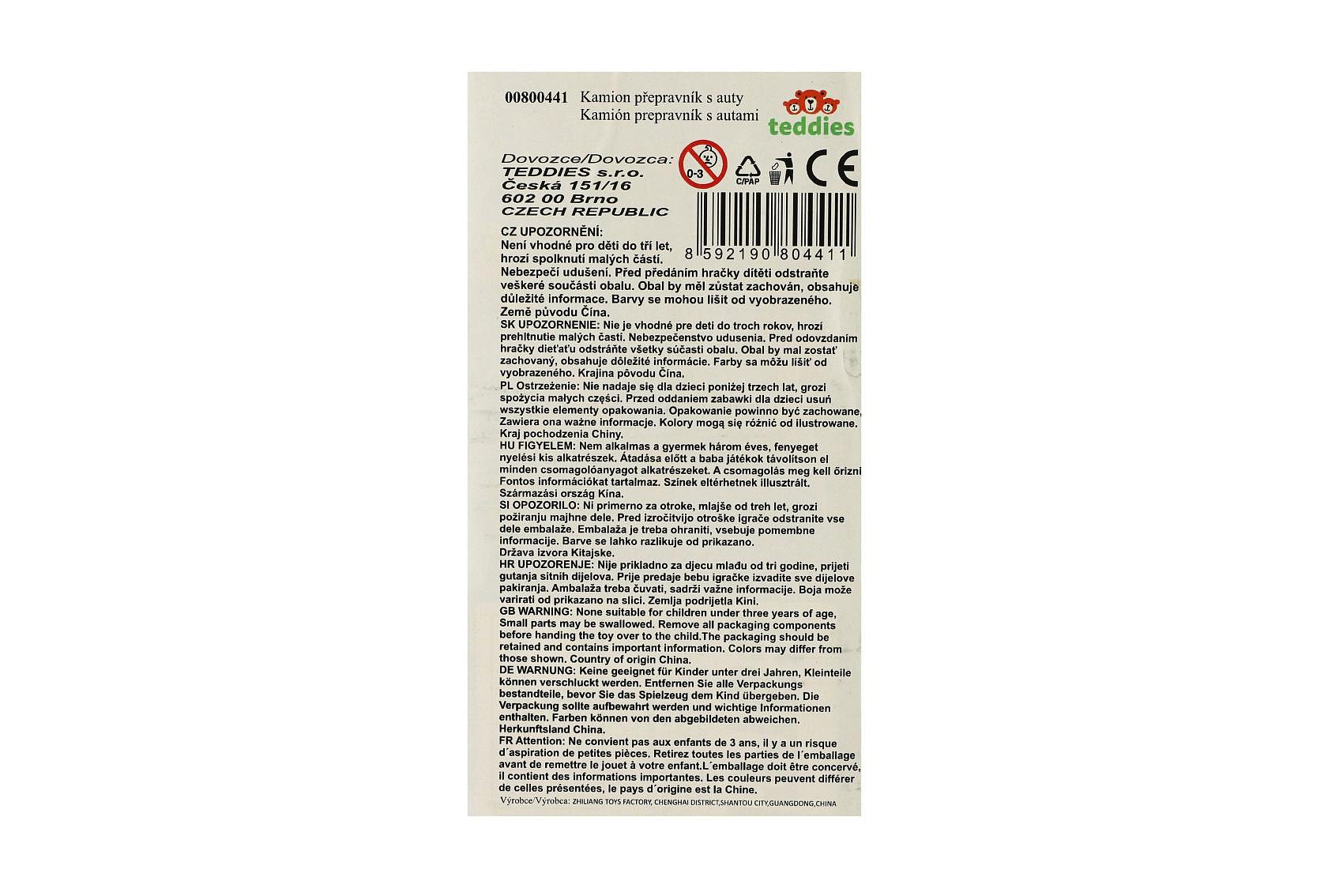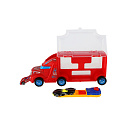 Auto kamion přepravník + auto 2ks plast 28cm na volný běh 2 barvy v krabici 29x12x8cm