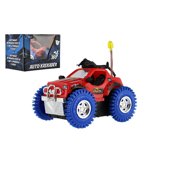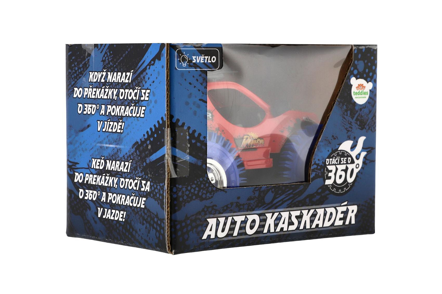 Auto kaskadérské plast 9x9cm na baterie se světlem, zvukem v krabičce 14x10cm