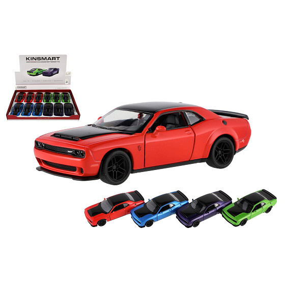 Auto Kinsmart 2023 Dodge Challenger SRT Demon 170 kov/plast 13cm 4barvy na zpětné nat. 12ks v boxu