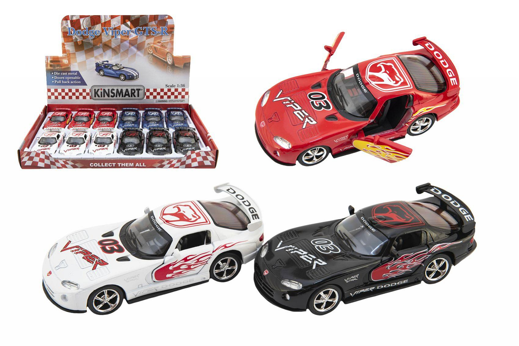 Auto Kinsmart Dodge Viper GTS-R 1:36 12,5cm kov/plast 4 barvy na zpětné natažení 12ks v boxu