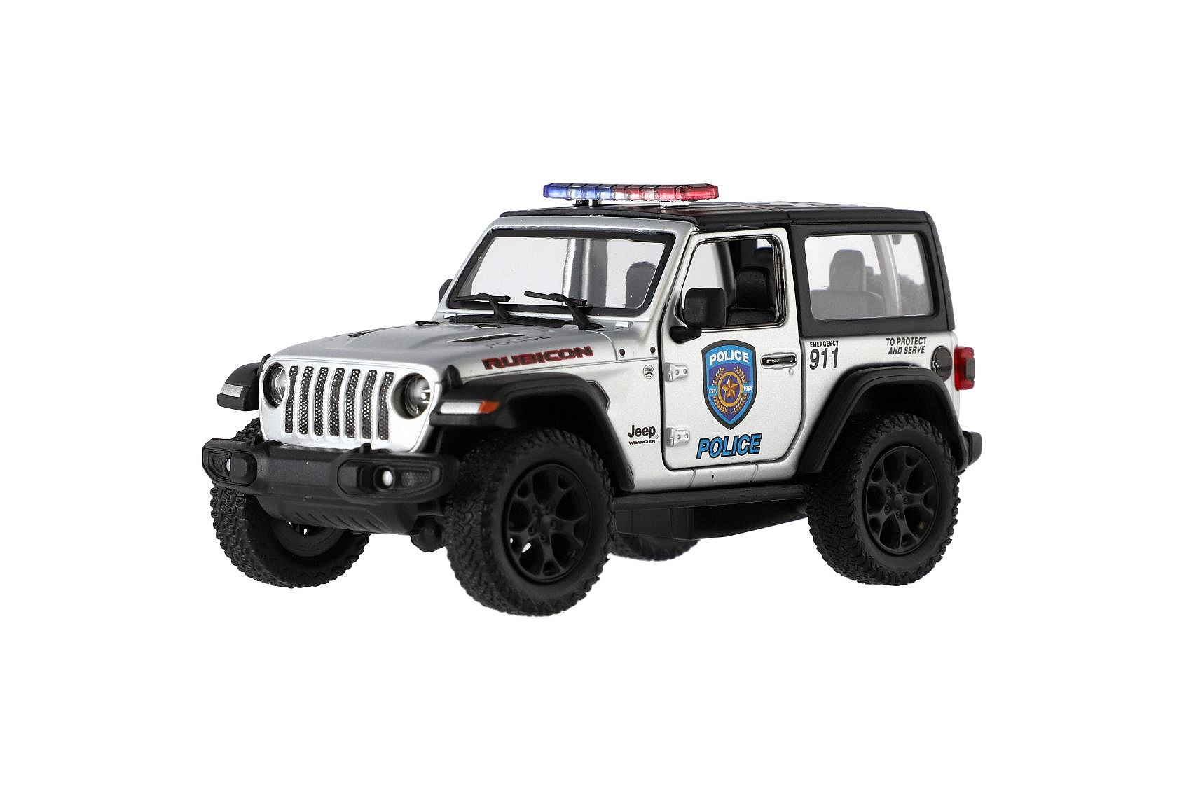 Auto Kinsmart Jeep Wrangler Policie 2018 kov/plast 12cm 2 barvy na zpětné nat. 12ks v boxu