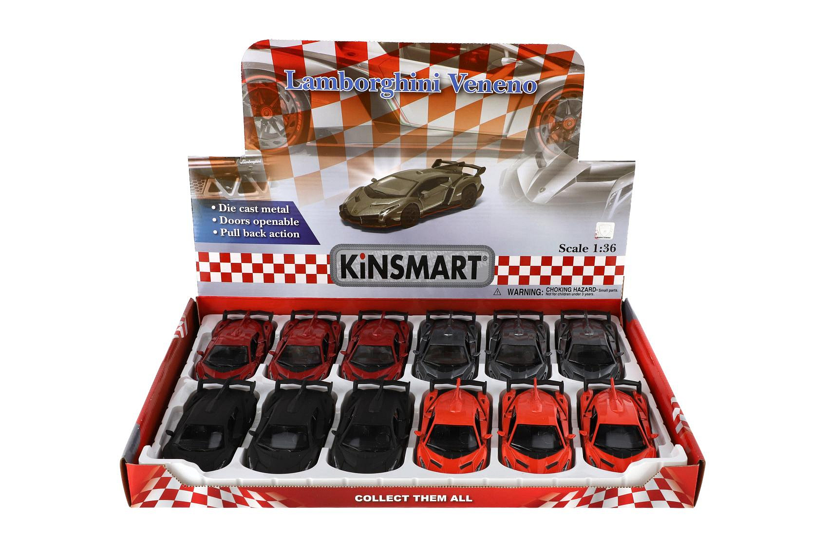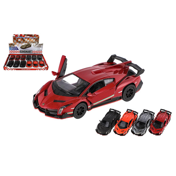 Auto Kinsmart Lamborghini Veneno kov/plast 13cm na zpětné natažení 4 barvy 12ks v boxu