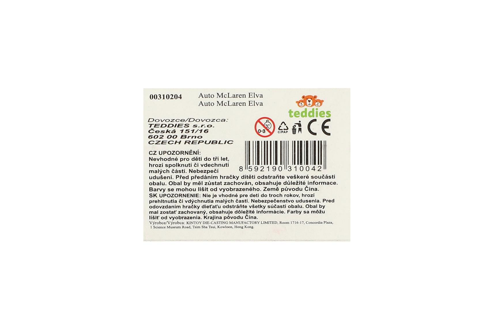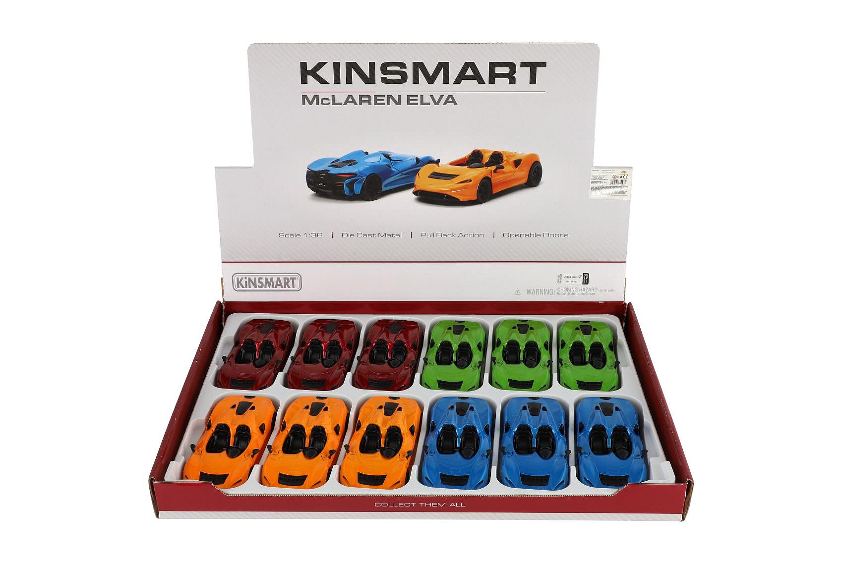Auto Kinsmart McLaren Elva kov/plast 13cm na zpětné natažení 4 barvy 12ks v boxu