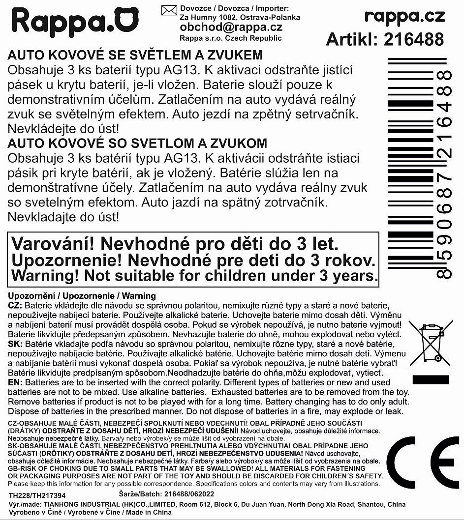 Auto Lada s otevíracími dveřmi. Zatlačením na auto, vydává různé zvuky a svítí. Auto jezdí na zpětný setrvačník. Obsahuje 3 ks baterií typu AG13. Velikost 12 cm.