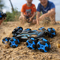 Ten 8-kołowy samochód to prawdziwy mistrz manewrowania! Pokona każdą przeszkodę, nawet schody, dzięki swoim nietypowym kołom. Sterowanie nim to czysta przyjemność, a funkcja transformacji kół pozwala na szybką zmianę wysokości podwozia czy wjechanie na podwyższenie bez najmniejszego problemu.