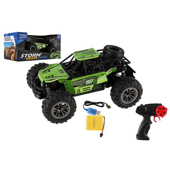 Popis Auto RC buggy terénní zelené 22cm plast 2,4GHz na baterie + dobíjecí pack v krabici 32x16x18cm