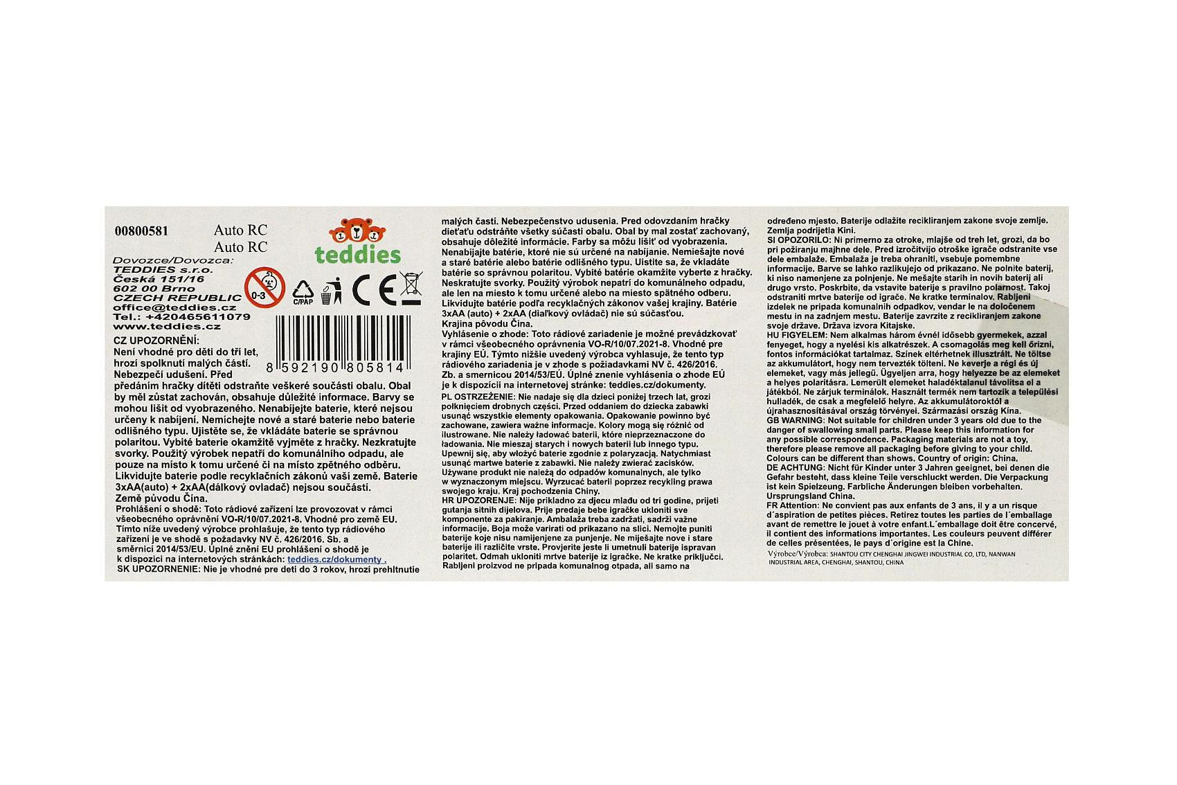 Auto RC Lamborghini plast 20cm 2,4GHz na dálk. ovládání na baterie se světlem v krabici 29x11x14cm