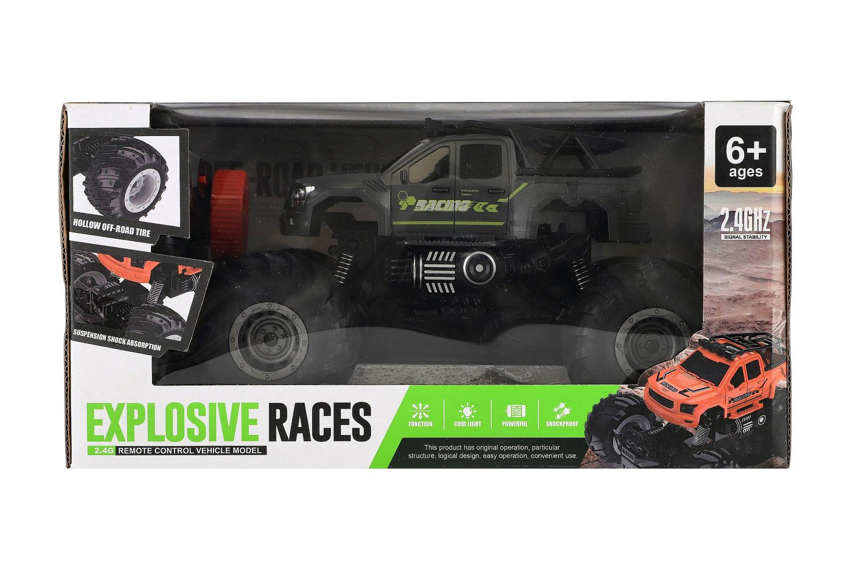 Auto RC pick up Off road terénní plast 23cm 2,4GHZ na baterie se světlem šedé v krab. 30x15x19cm