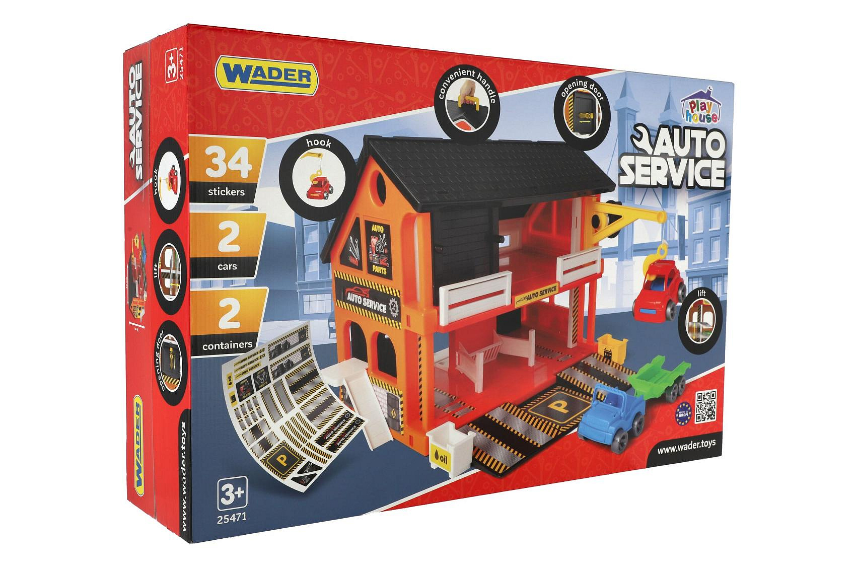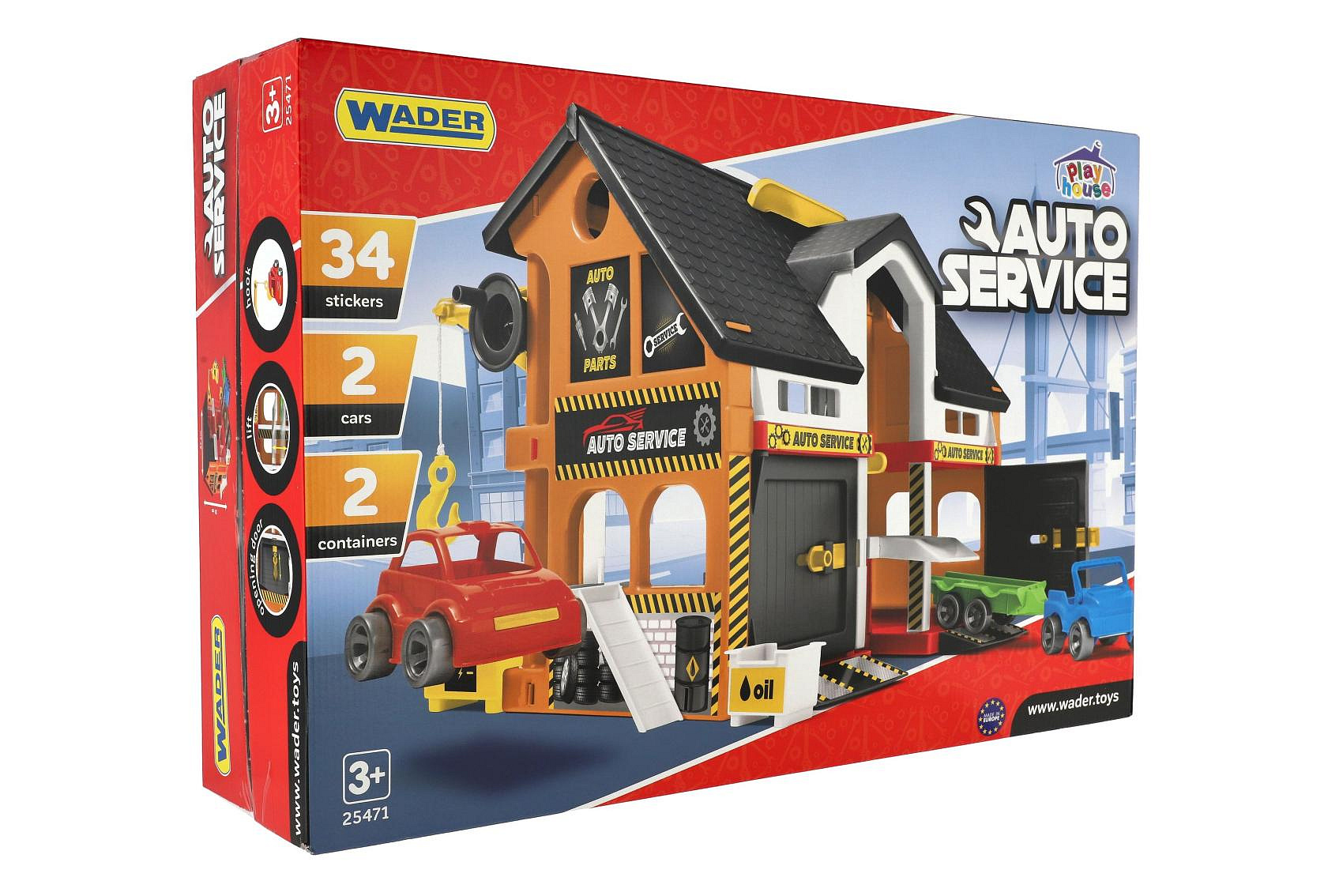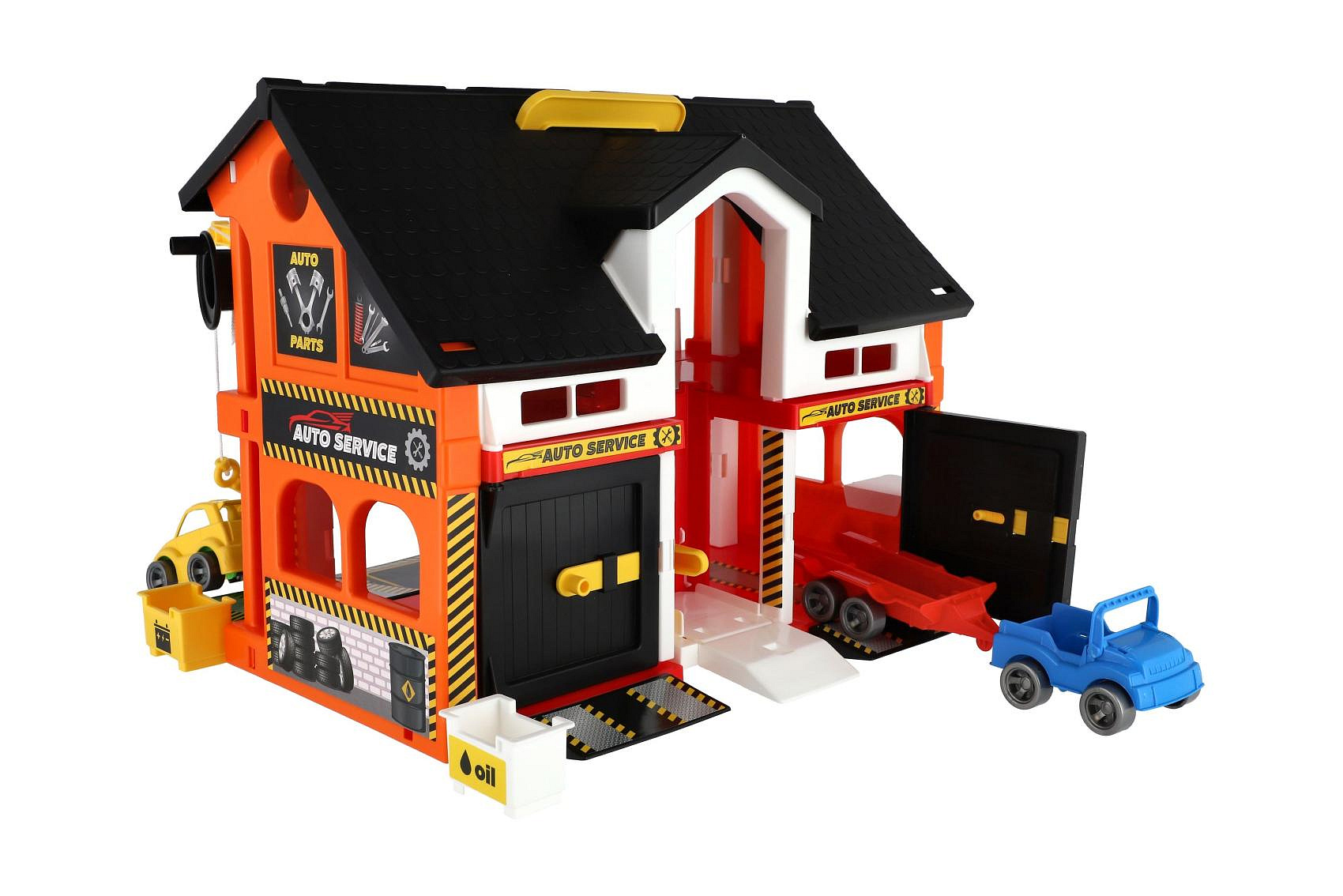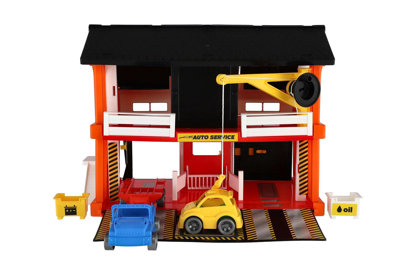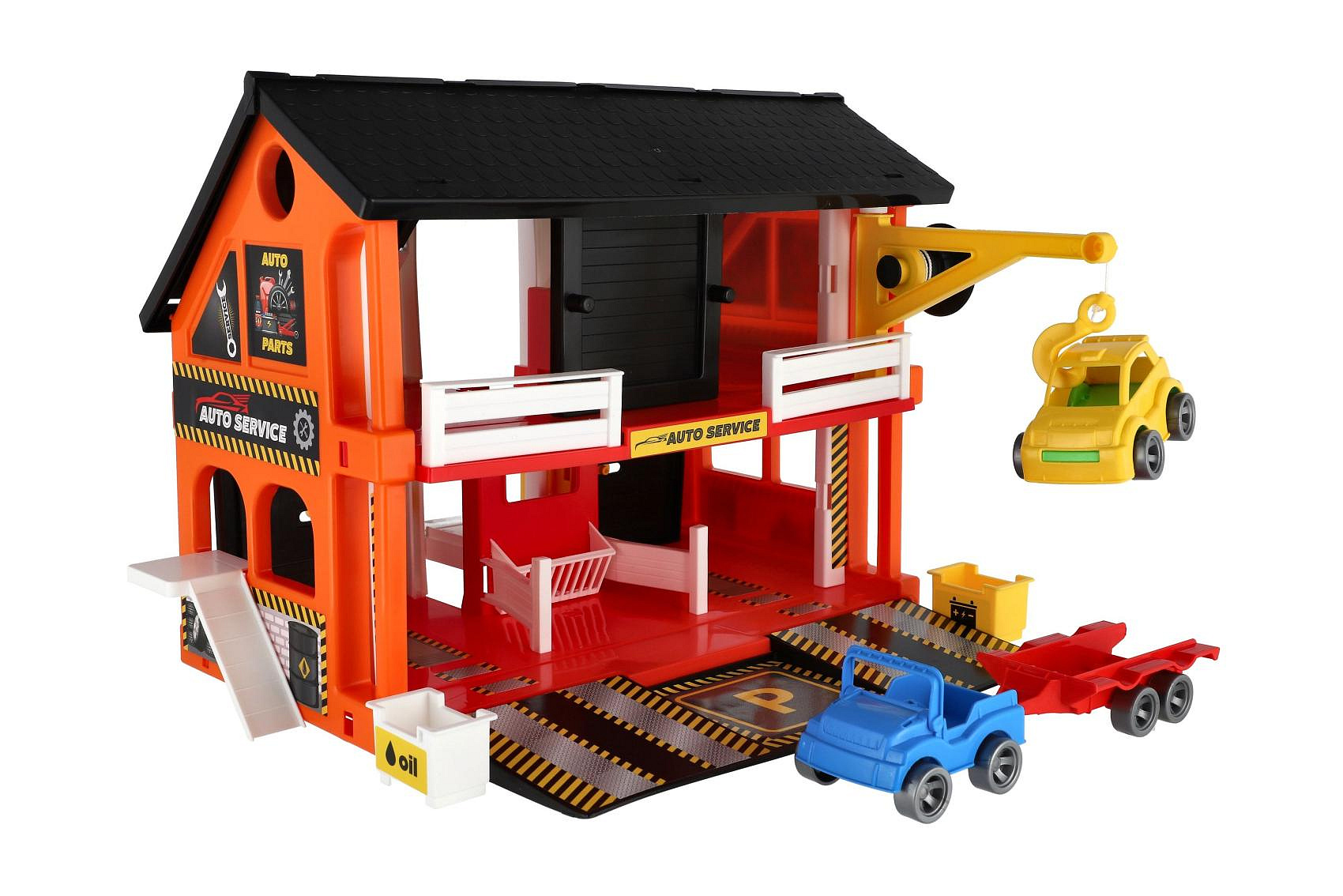 Popis Auto servis 2 patra + 3 auta plast v krabici 59x39x15cm Wader