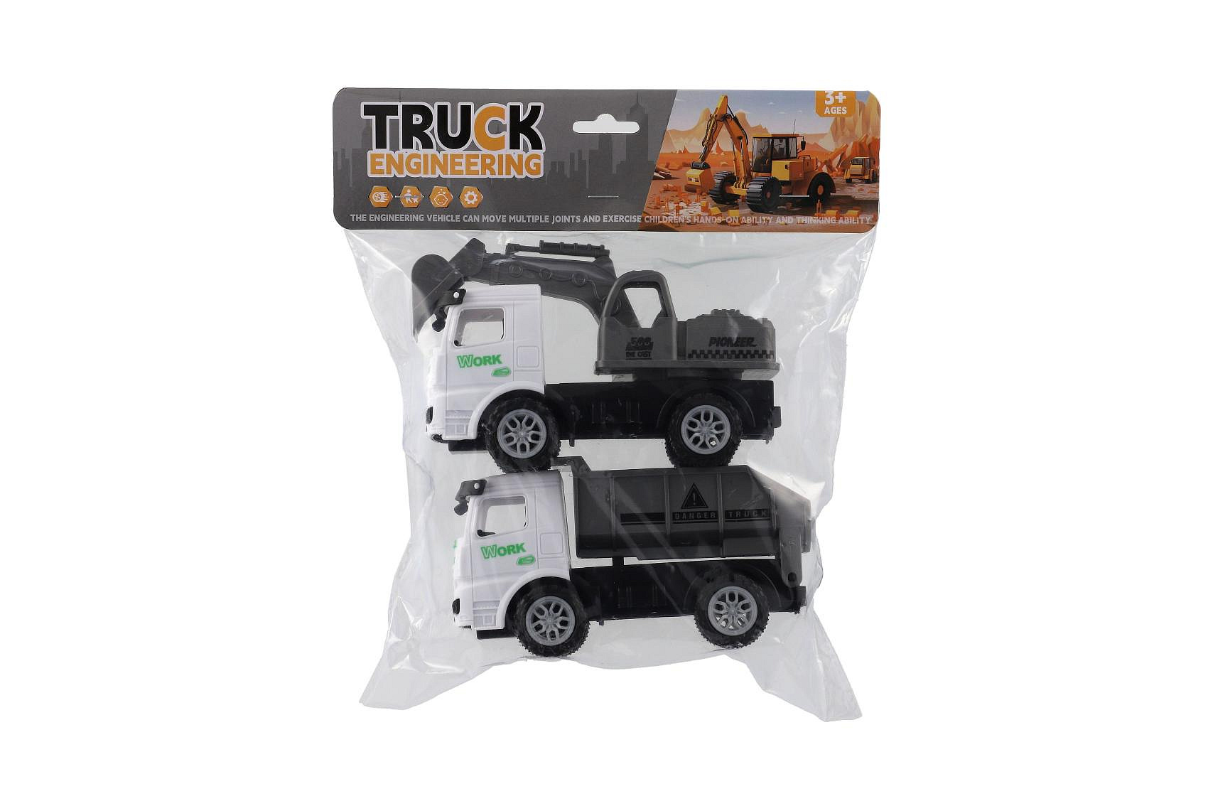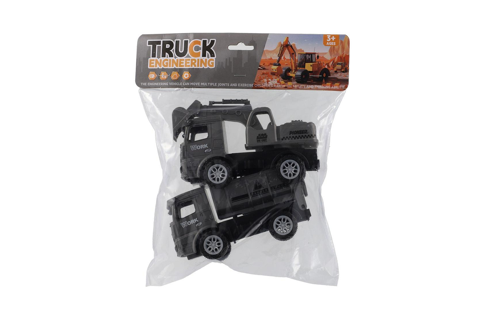 Auto stavební 2ks plast 15cm na setrvačník 2 barvy v sáčku