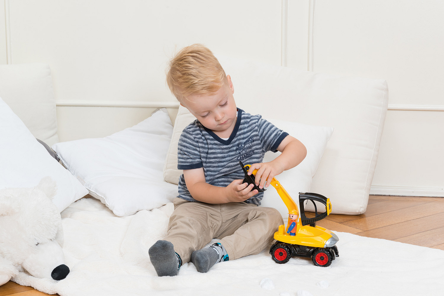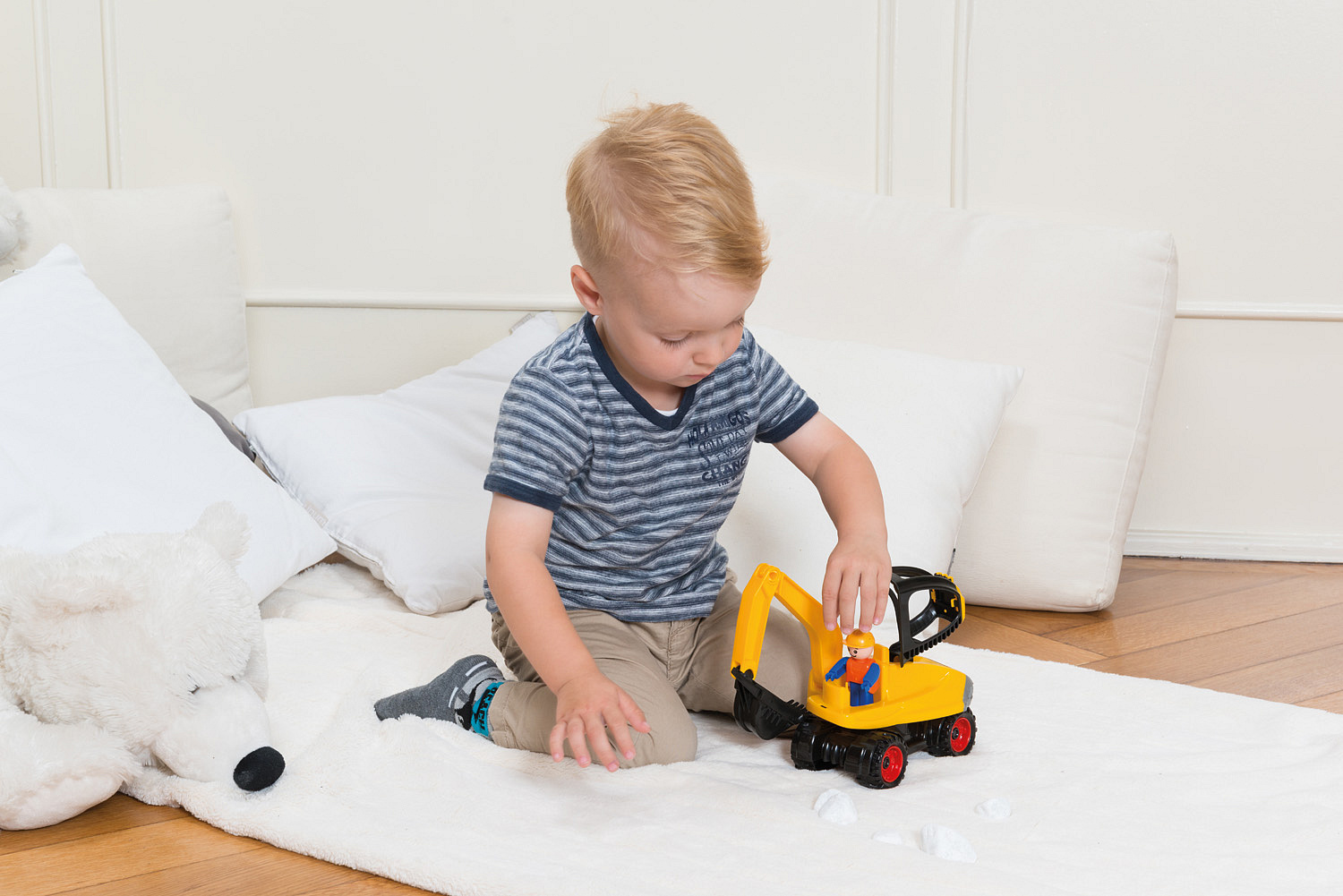 Truckies bagr je plně mechanicky funkční z vysoce odolného materiálu. Součástí auta je odklopitelná