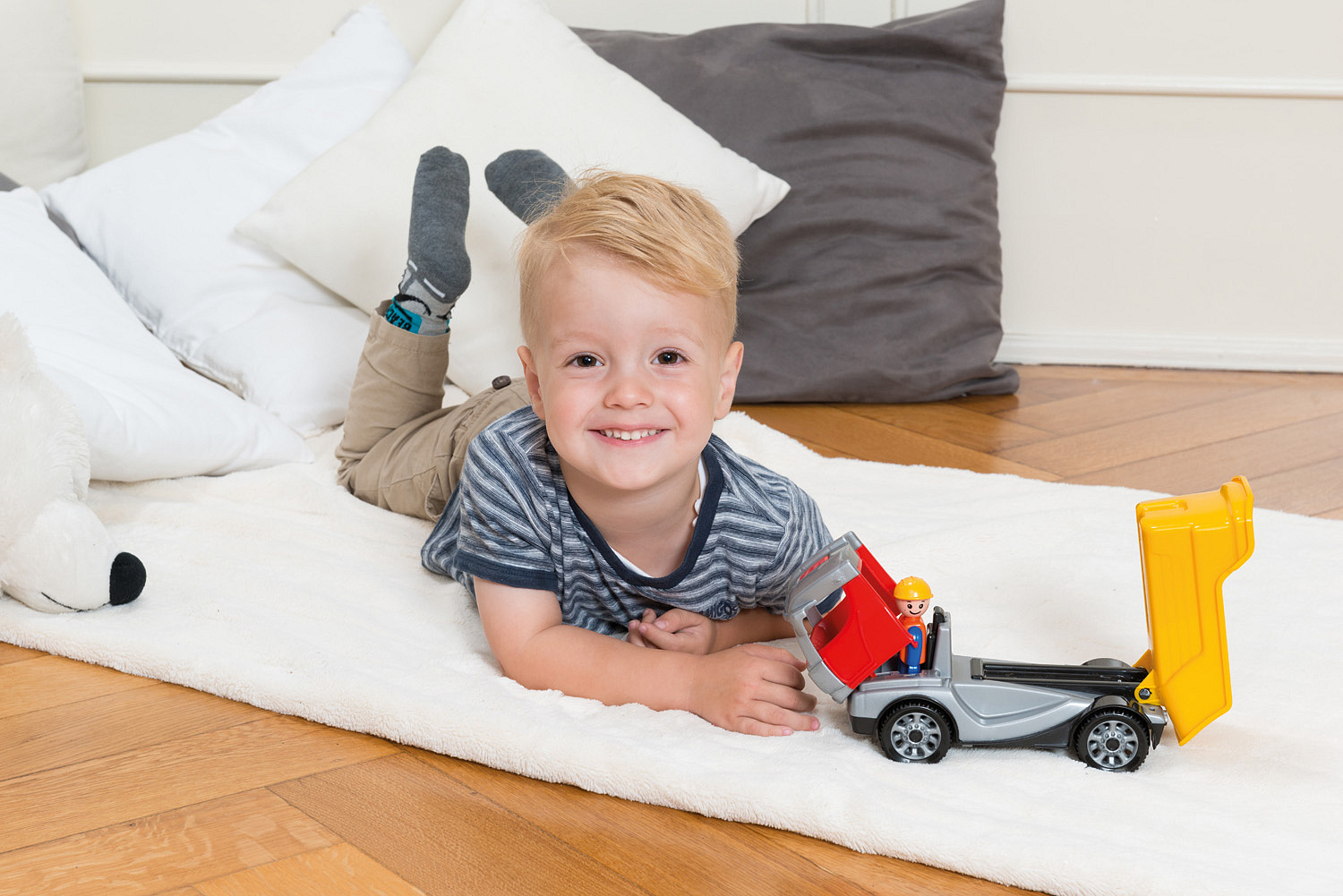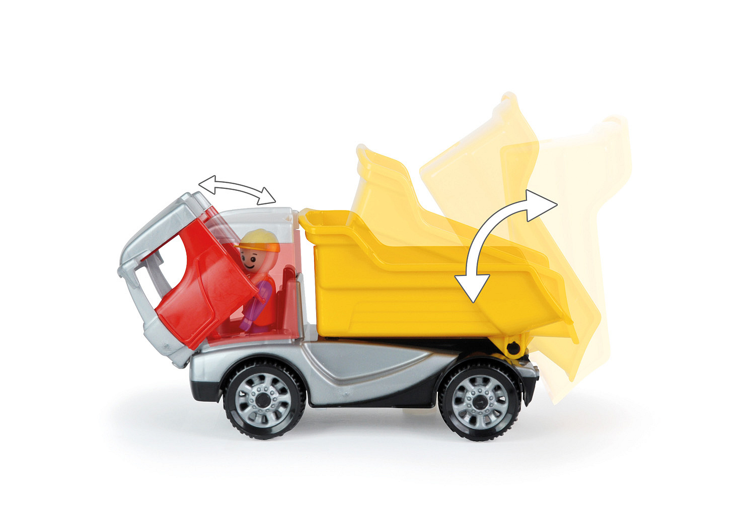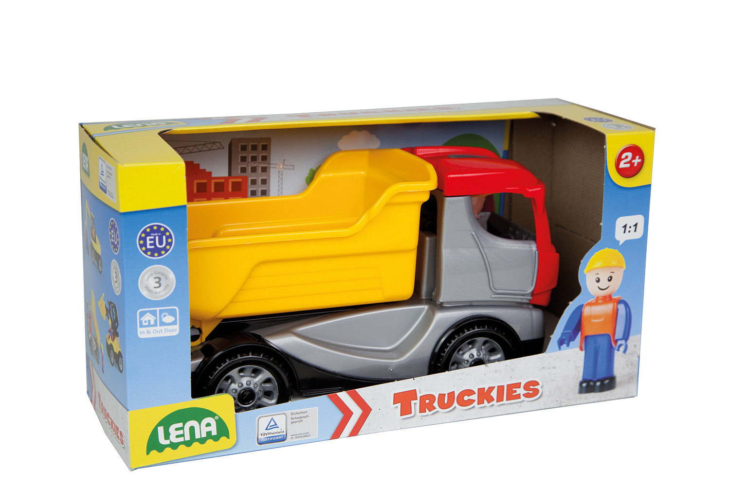 Truckies sklápěč je plně mechanicky funkční z vysoce odolného materiálu. Součástí auta je odklopitelná kabina a aktivní panáček. Rozměry balení 26 x 10 x 14,5 cm. Vhodné pro děti od 2 let.
