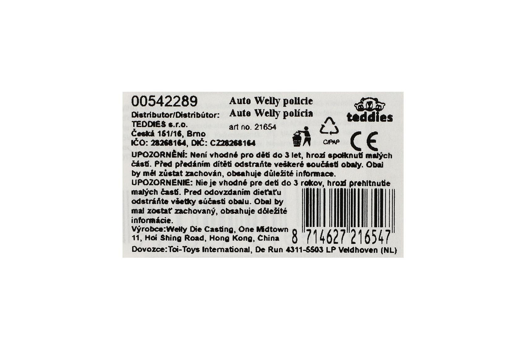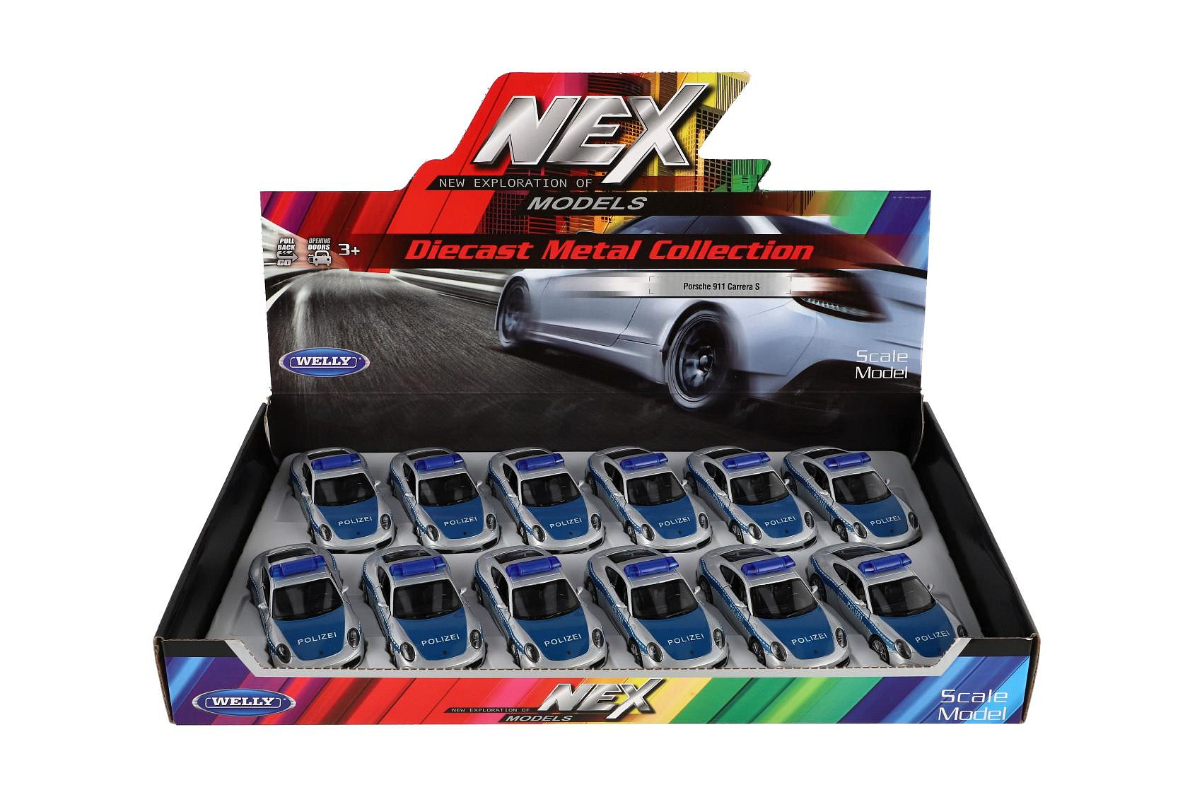 Auto Welly policie Porsche 911(991) Carrera S kov/plast 12cm volný chod 12ks v boxu