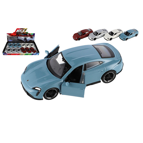 Auto Welly Porsche Taycan Turbo S kov/plast 12cm 4 barvy na zpětné natažení 12ks v boxu