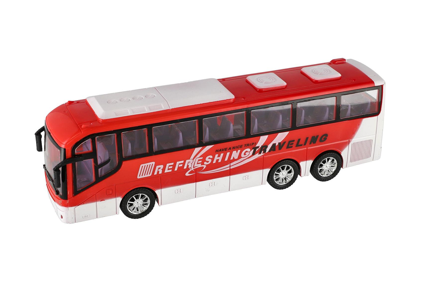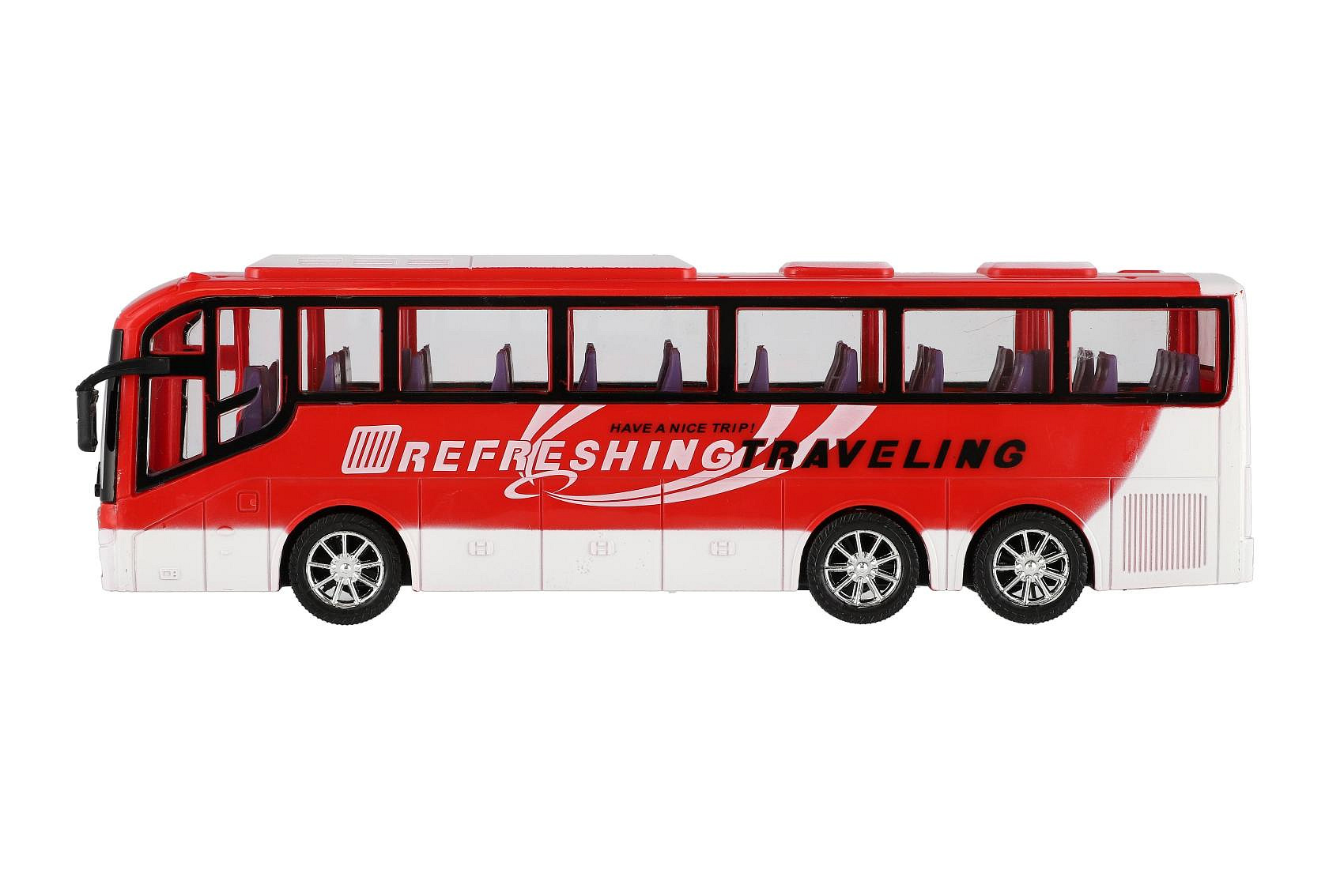 Popis Autobus dálkový plast 31cm na setrvačník 2 barvy v blistru
