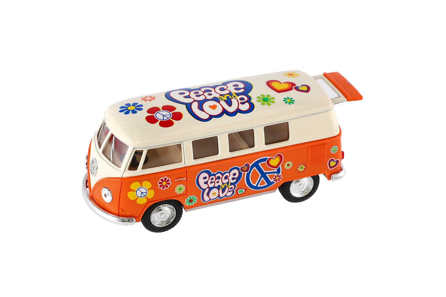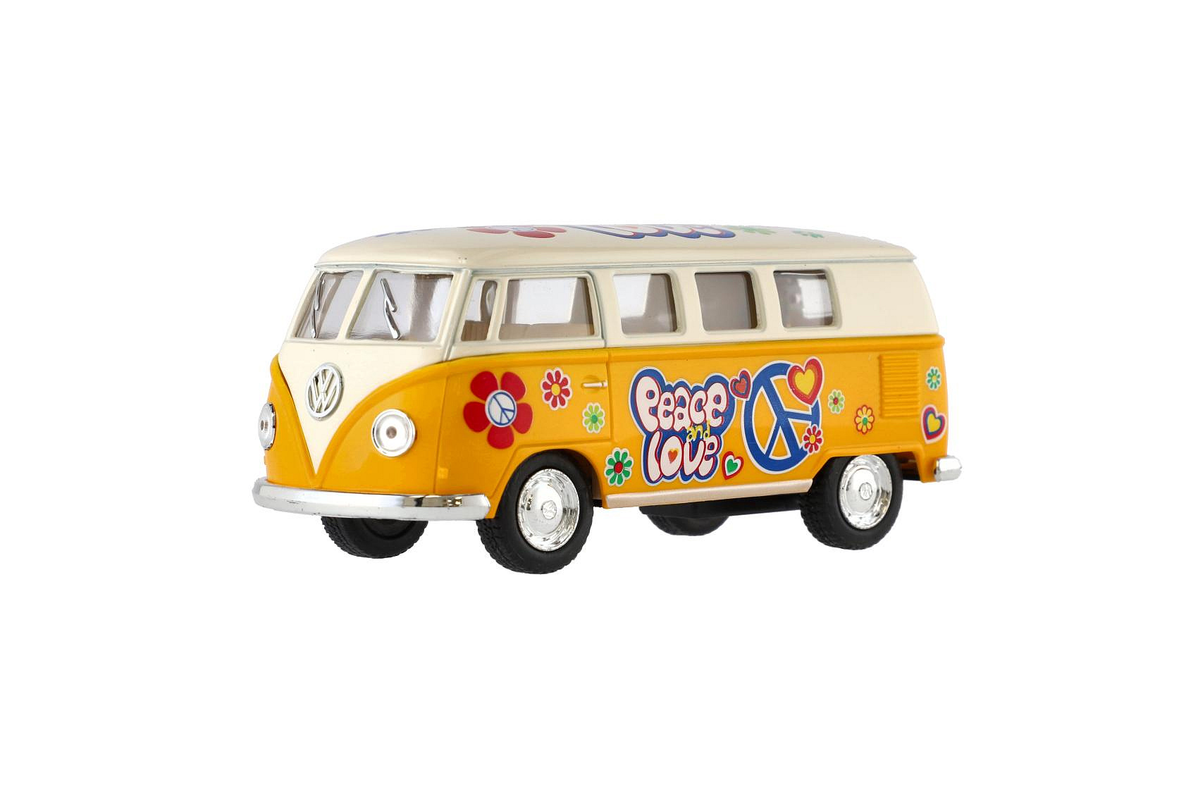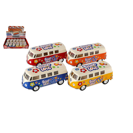 Autobus Kinsmart VW Classical kov/plast 13cm na zpětné natažení 4 barvy 12ks v boxu