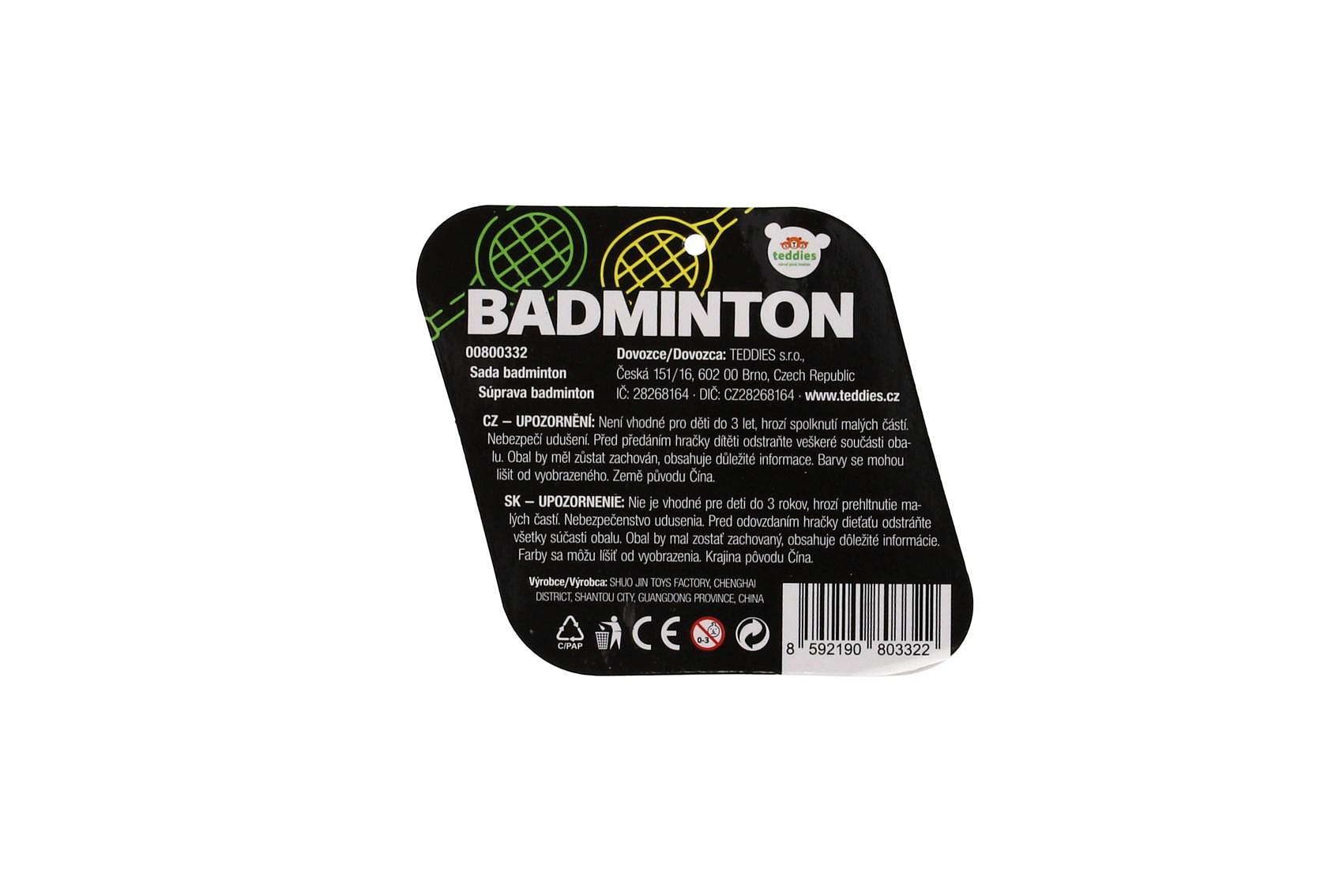 Badminton sada dětská kov/plast 2 pálky + 1 košíček 2 barvy v síťce 23x45x6cm