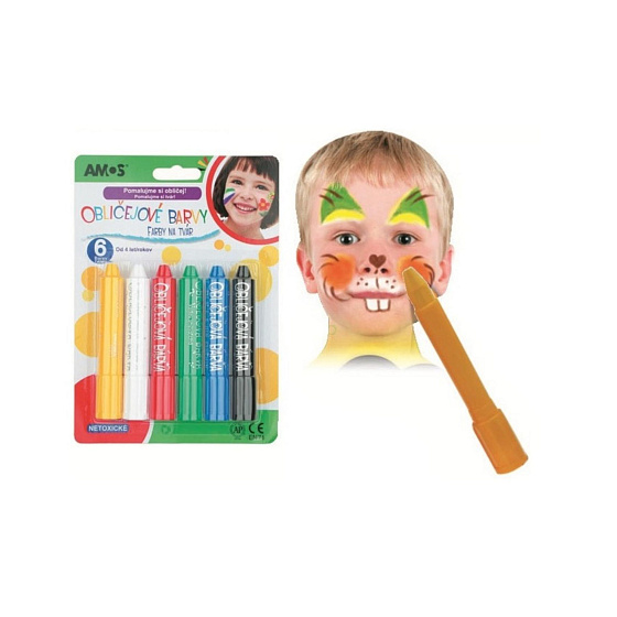 Barvy obličejové v tužce 6ks na kartě 14x20cm karneval