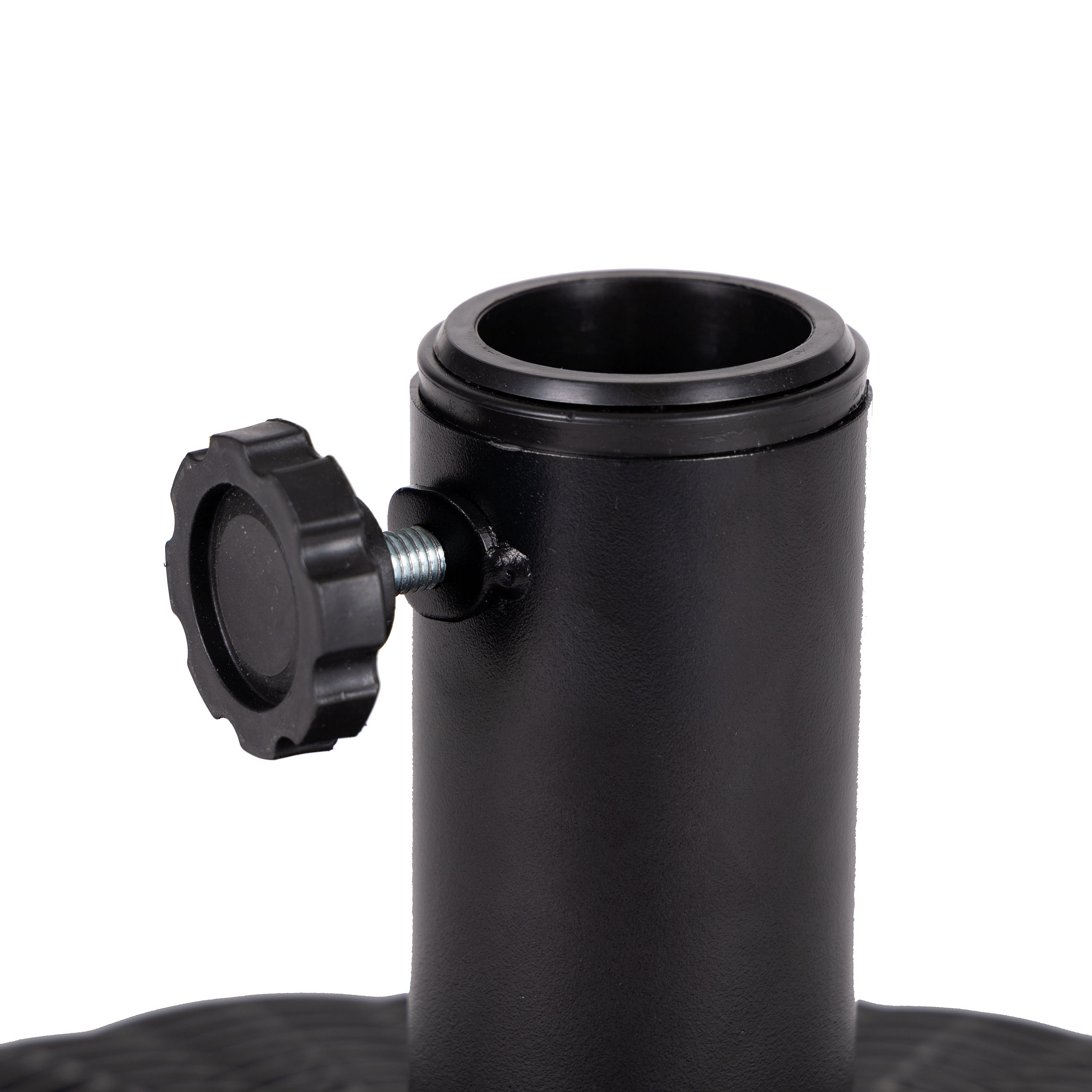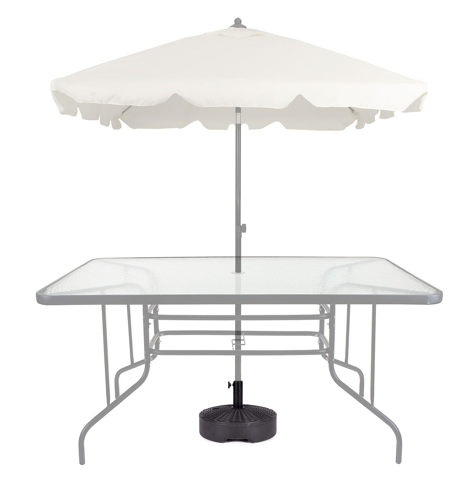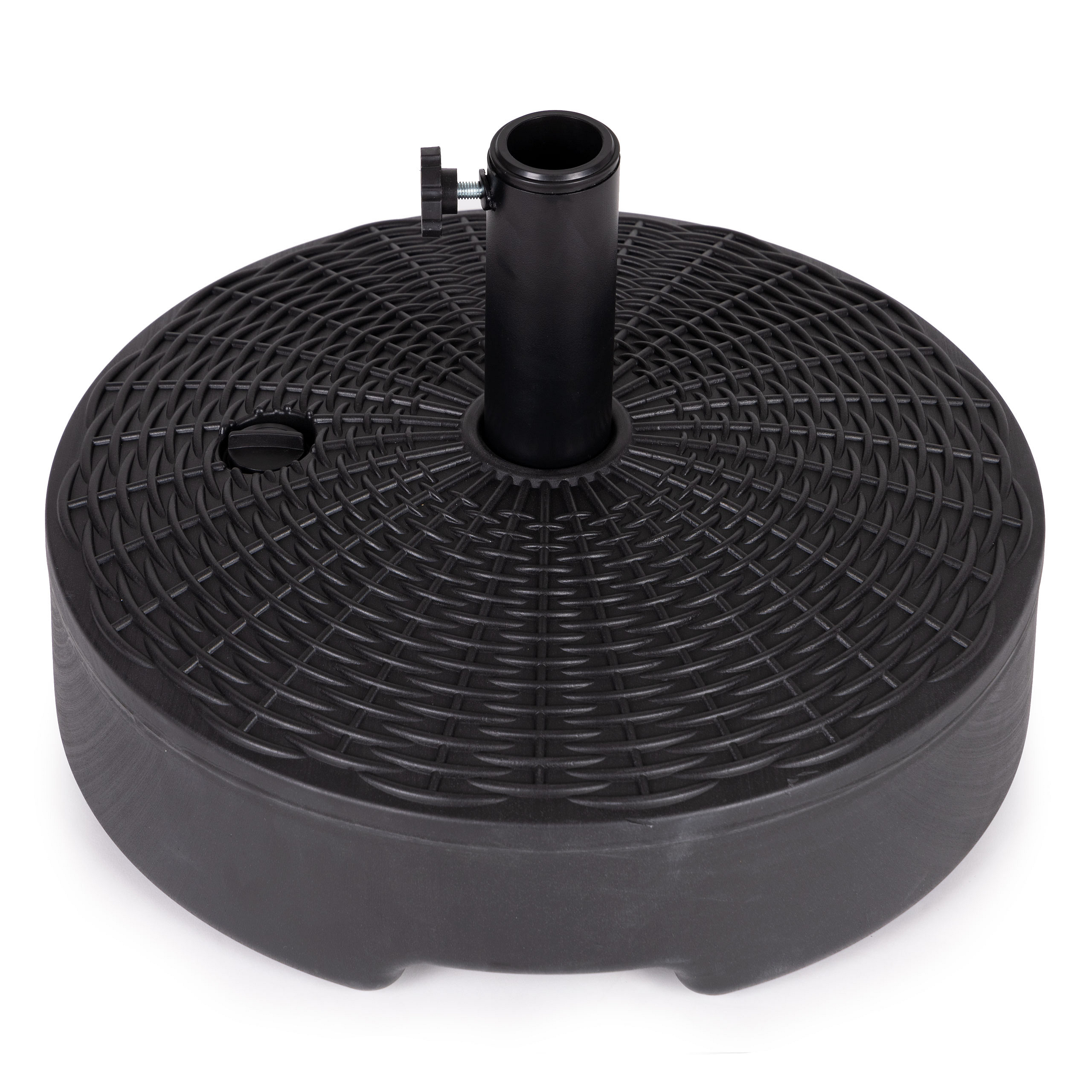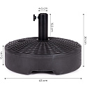At the top of the base there is a screw cap. After unscrewing it, you should fill the base with water. The weight will then be approx. 22 kg, which ensures perfect stabilization of the umbrella.