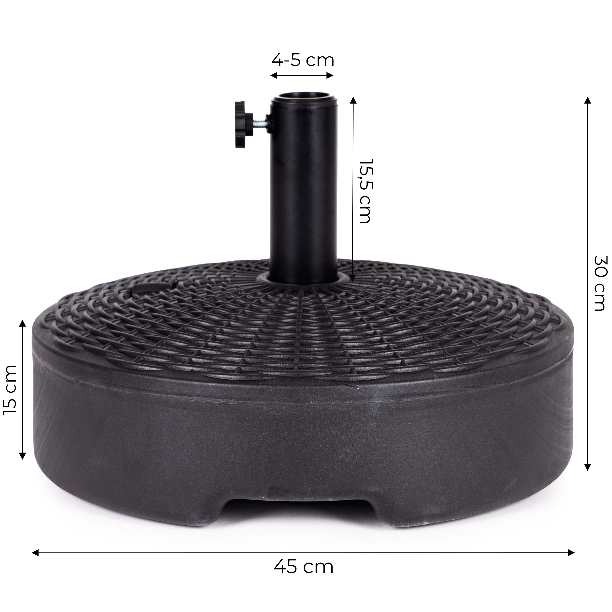The weight works perfectly in any garden, on a terrace, and wherever you place your umbrella. Simply fill it with water and it is ready to use. Thanks to the large capacity (22 liters), the weight keeps the umbrella in a vertical position.