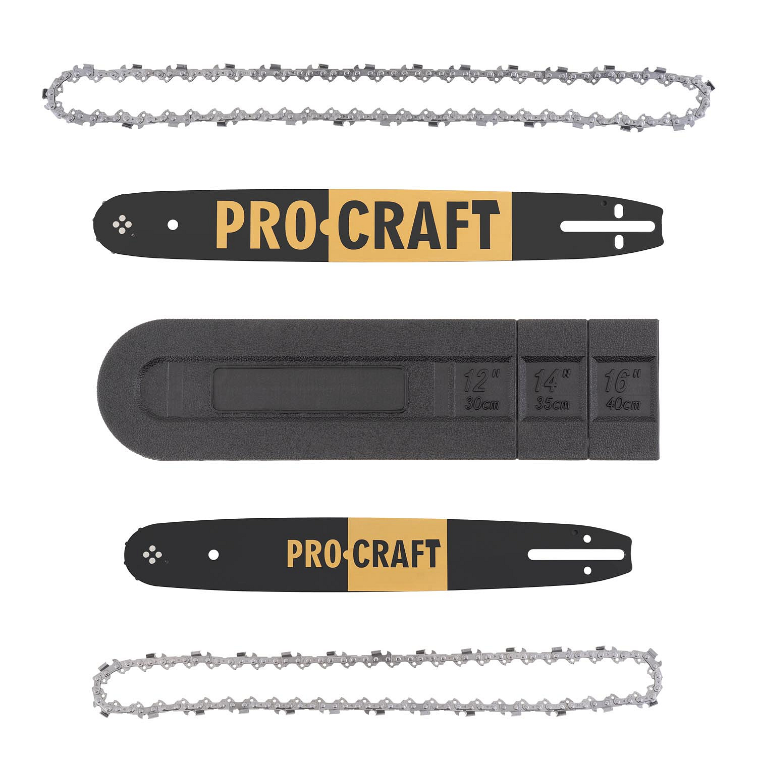 Vhodná pro vyšší zatížení. Součástí balení: ochrana lišty, 2 vodící lišty, 2 řetězy 3/8". Elektronic