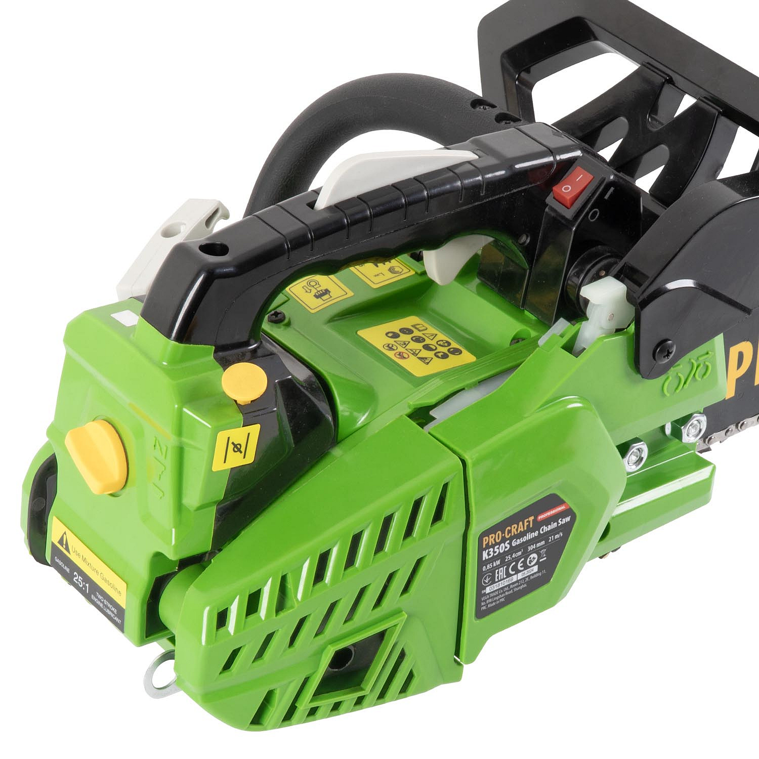 Benzínová řetězová pila Procraft K350S Objem motoru 25 (сm3) Příkon 850 (W) Typ motoru: Jednoválcov