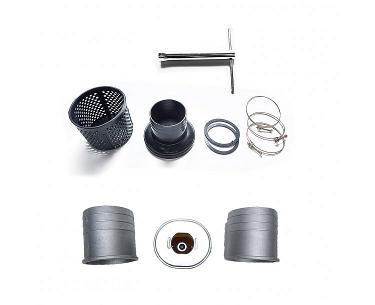 Součástí balení: klíč na svíčku, 3 hadicové svorky, hadicové hrdlo, převlečná matice, sací koš a tě