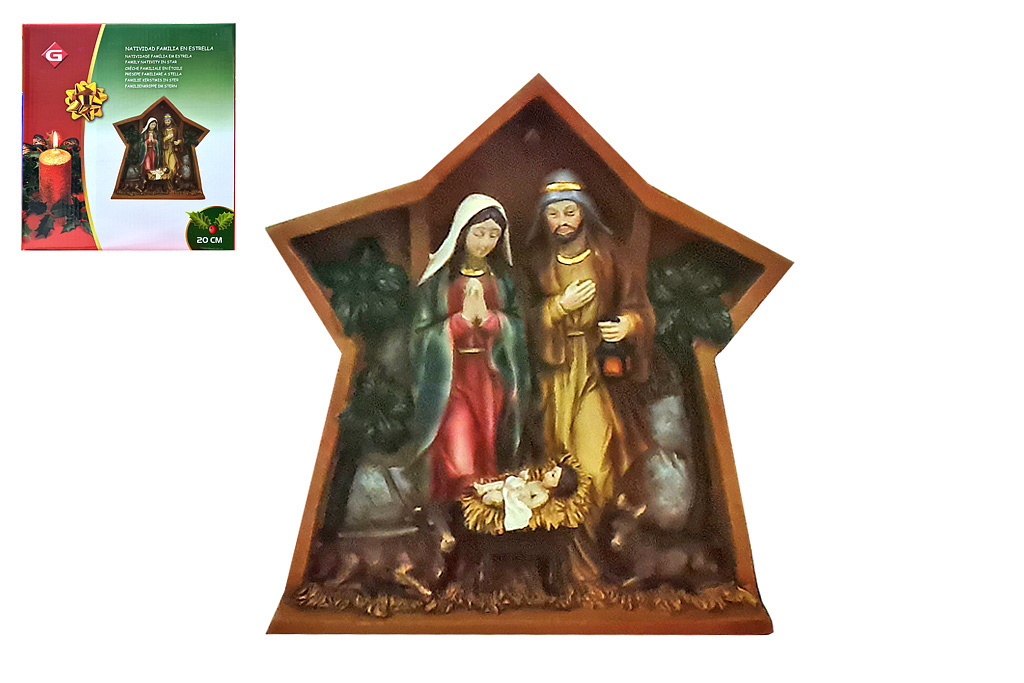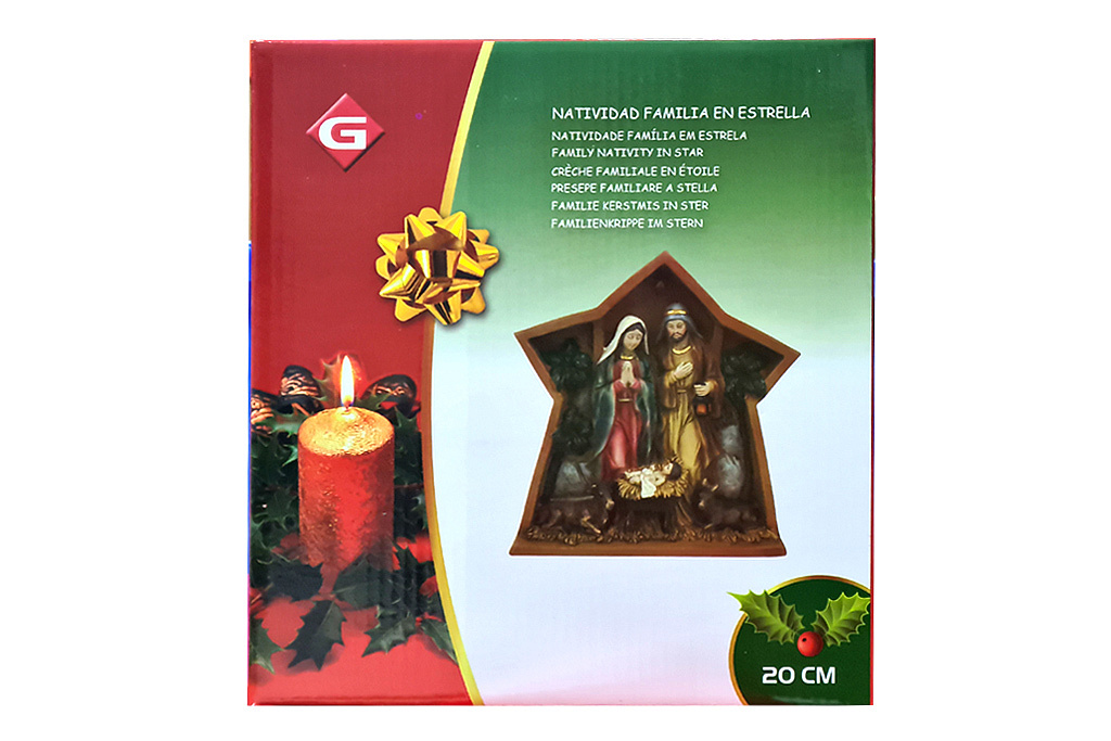 Přidejte do své vánoční výzdoby kouzlo s tímto jedinečným betlémem ve tvaru hvězdy o velikosti 20 cm. Uvnitř hvězdy jsou umístěny detailně zpracované figurky znázorňující scénu narození Ježíška. Tento elegantní a prostorově úsporný design přináší tradiční betlémský motiv v moderním pojetí, ideální pro výzdobu stolu, police nebo vánočního oltáře. Dokonalý doplněk pro vytvoření klidné a sváteční atmosféry ve vašem domově.Více