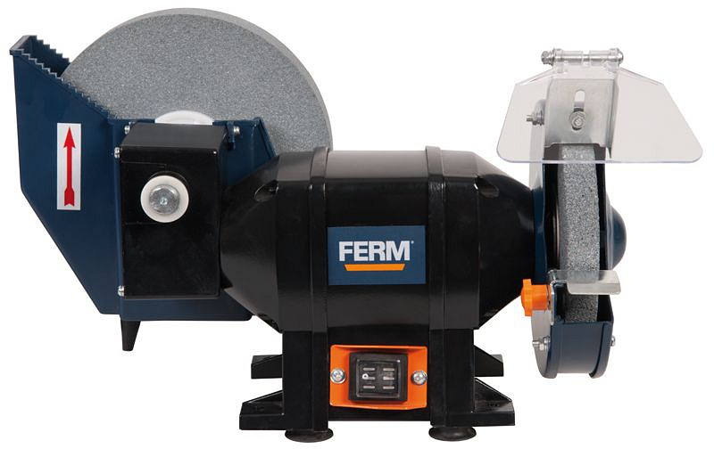 BGM1021 - Pomaloběžná bruska je středně velká stolní bruska vybavená pomaloběžným kotoučem pro brousící práce, při nichž je pomaloběžný kotouč chlazen vodou. Tím je hodná pro broušení nožů, nůžek a jiných nástrojů, kde je potřeba předejít přehřátí materiálu.