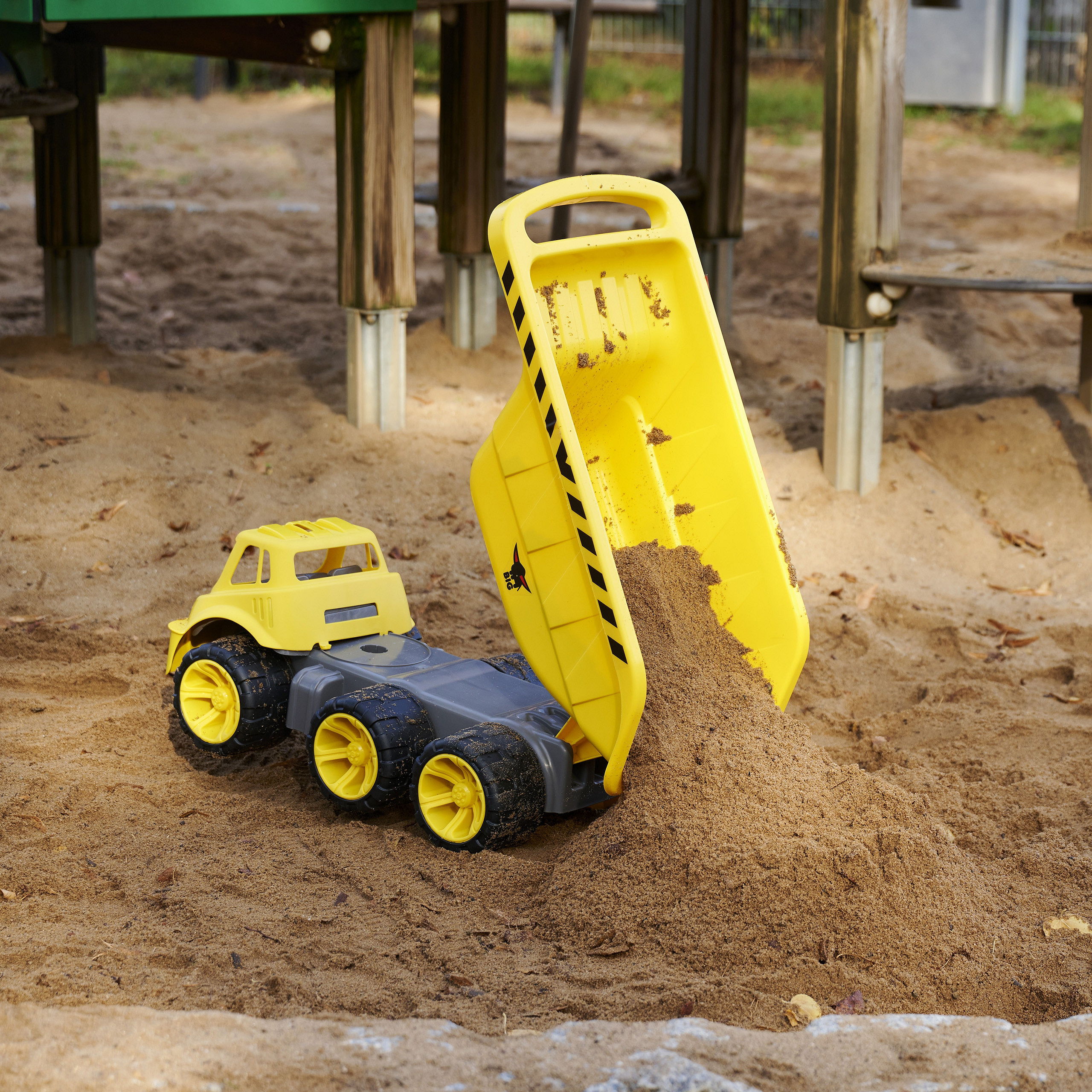 - - jaskrawożółty kolor i nowoczesne naklejki sprawiają, że wygląda jak prawdziwa wywrotka