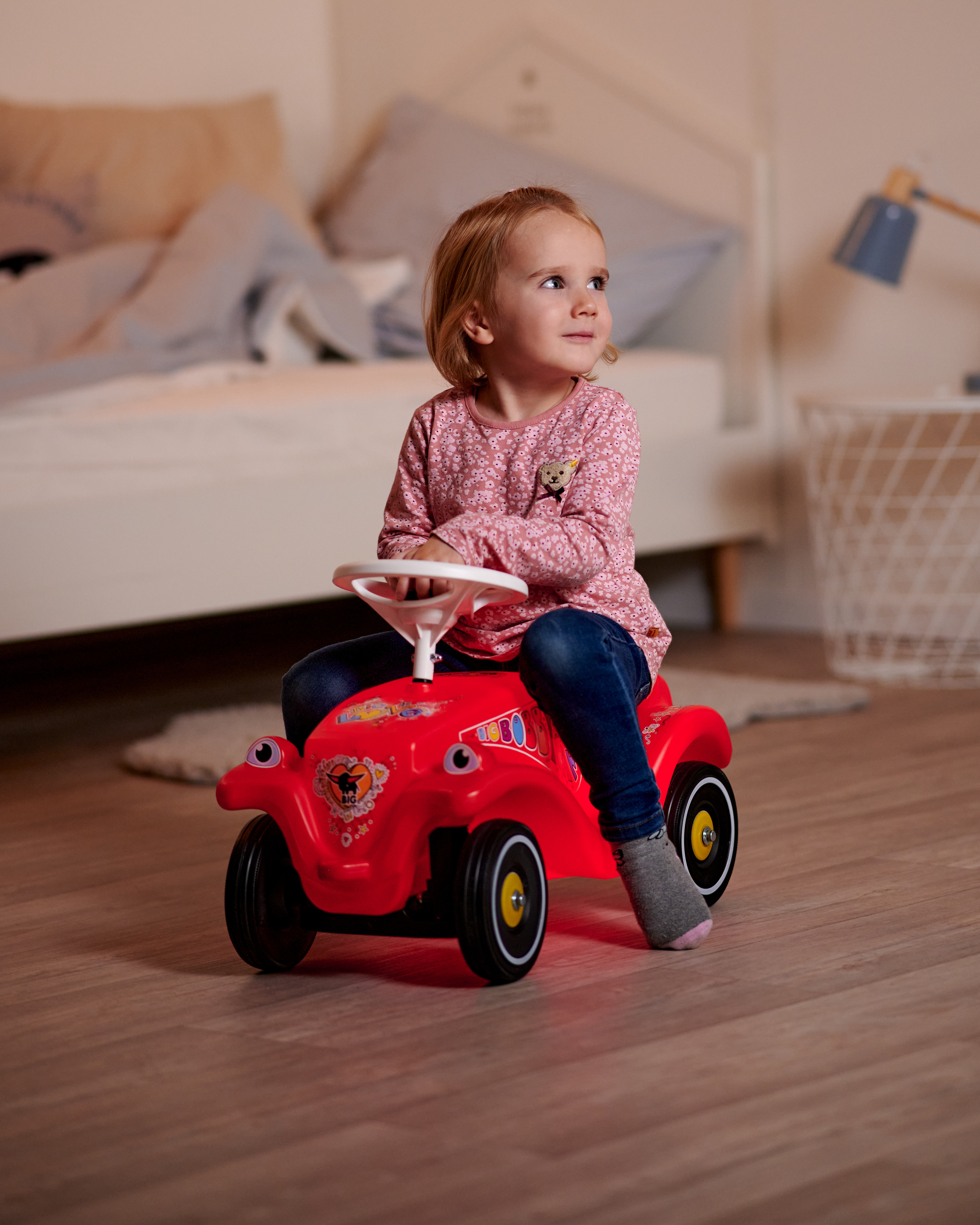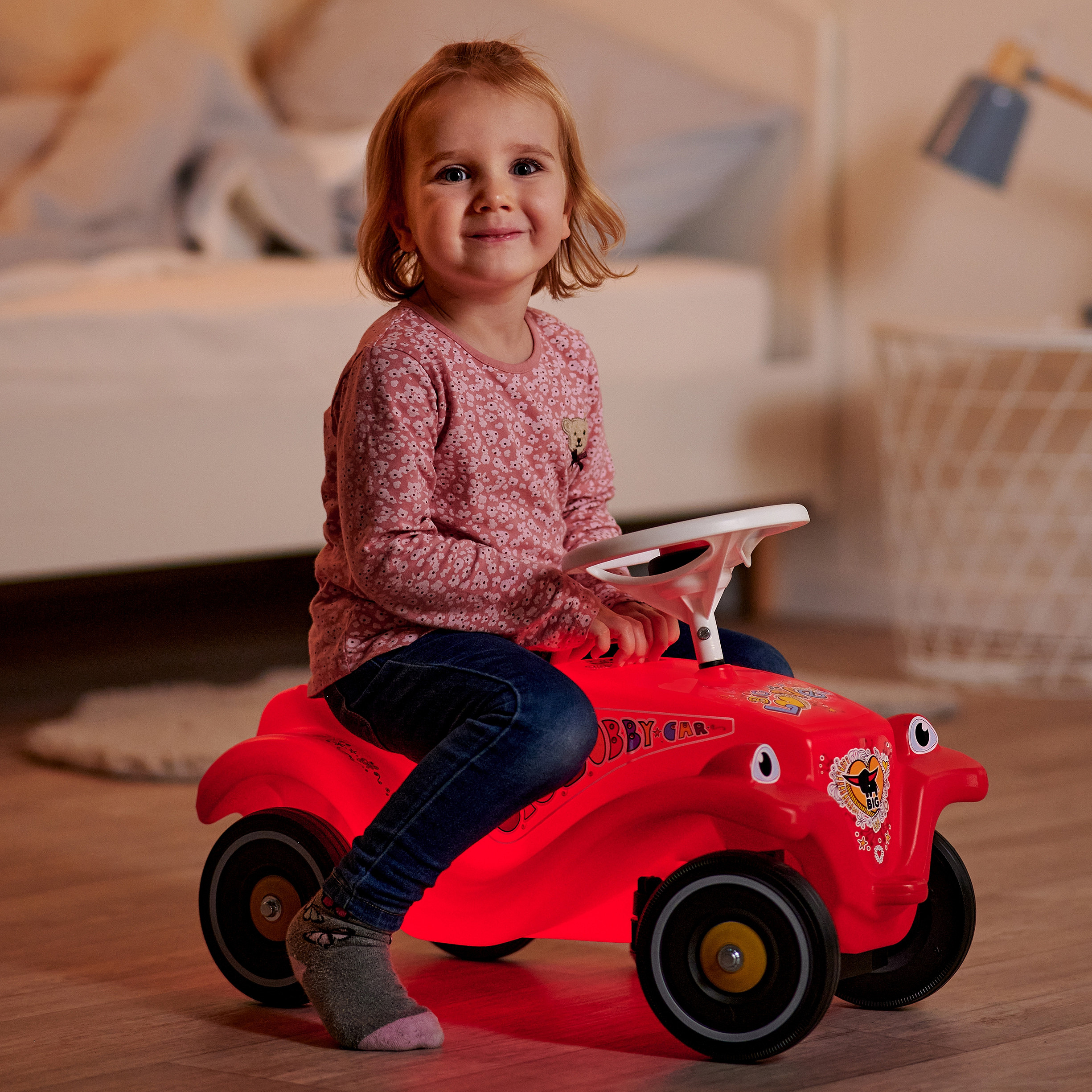 BIG Jeździk Bobby Car LUMI z Klaksonem Światło LED Klasyka w nowym świetle! Poznaj Bobby Car LUMI – kultowy jeździk renomowanej marki BIG, teraz w nowoczesnej odsłonie z efektownym oświetleniem LED. Ten ergonomiczny i wytrzymały pojazd w intensywnie czerwonym kolorze przyciąga wzrok i rozpala dziecięcą wyobraźnię. Zaprojektowany z myślą o komfortowej zabawie, jeździk wyposażono w kierownicę z klaksonem oraz wyprofilowane siedzisko. To nie tylko pojazd – to pierwszy środek transportu dla małego odkrywcy!.