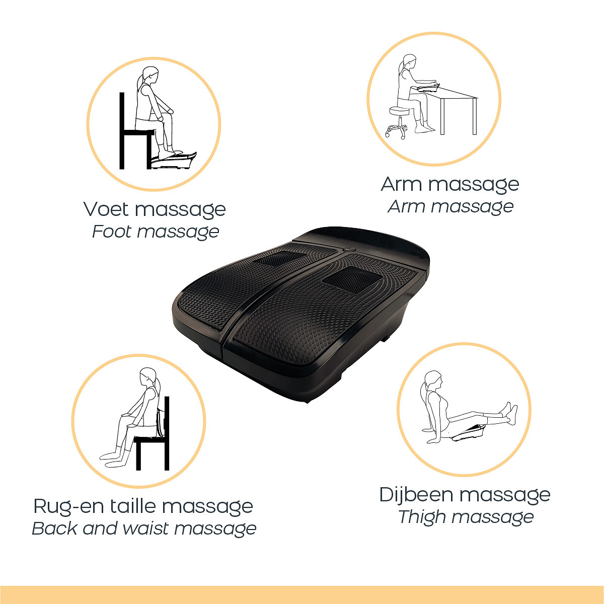 With the Vibration Leg Trainer you keep your body moving without too much effort. By using this device, your muscles become firmer, varicose veins are reduced and blood circulation is also improved. Just put your legs on the leg massager and let the device do the work for you. And that's not all, because the foot massager can also be used to massage your arms, hands, back and waist. A multifunctional device! The massager is suitable for people of all ages.